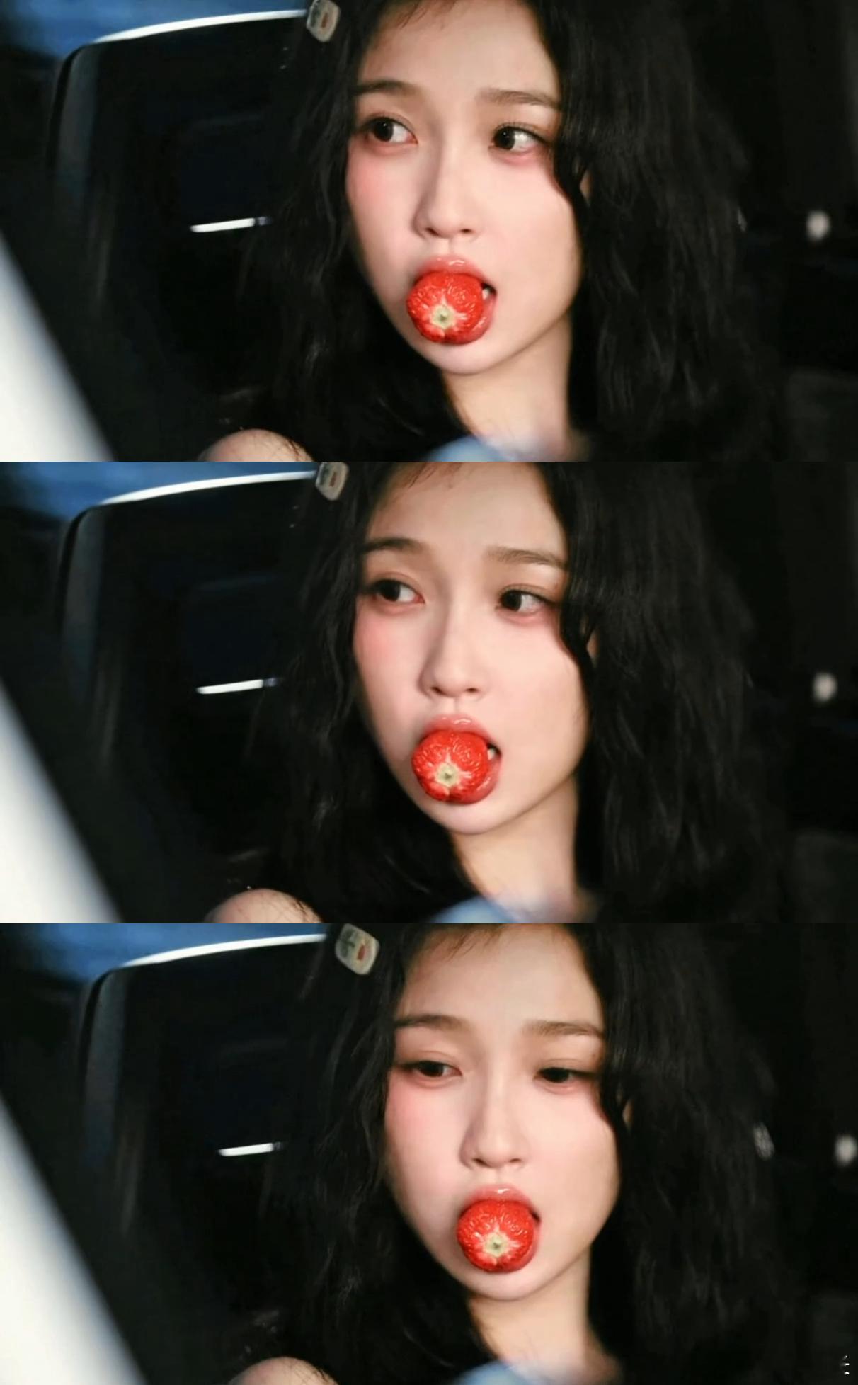 我也想尝虞书欣吃的草莓味道 虞书欣又出神图了,简单清纯的双马尾俏皮又灵动,搭配白色吊带直接把少女感拉满,看向镜头的眼睛亮晶晶的,像藏着星星一样,好治愈她手上的草莓红彤彤的和本人一样诱人,看着就汁水四溢,光看图片都能闻到甜甜的草莓味,真的好想尝尝欣欣子手里的草莓到底是什么味道