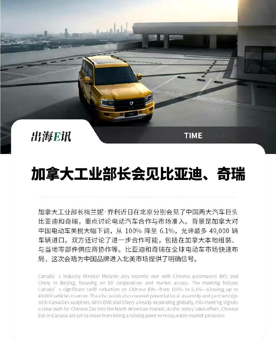 比亚迪、奇瑞或将获得加拿大第1批4.9万辆新能源汽车的进口配额! 加拿大工业部部长会见比亚迪和奇瑞方面的相关人士,探讨了在加拿大当地建设组装厂的一系列议题,这意味着这两家企业是加拿大方面比较看好的两家企业,这两家企业很有可能会获得在加拿大的先发优势。 各位是怎么看的?欢迎评论区留言。