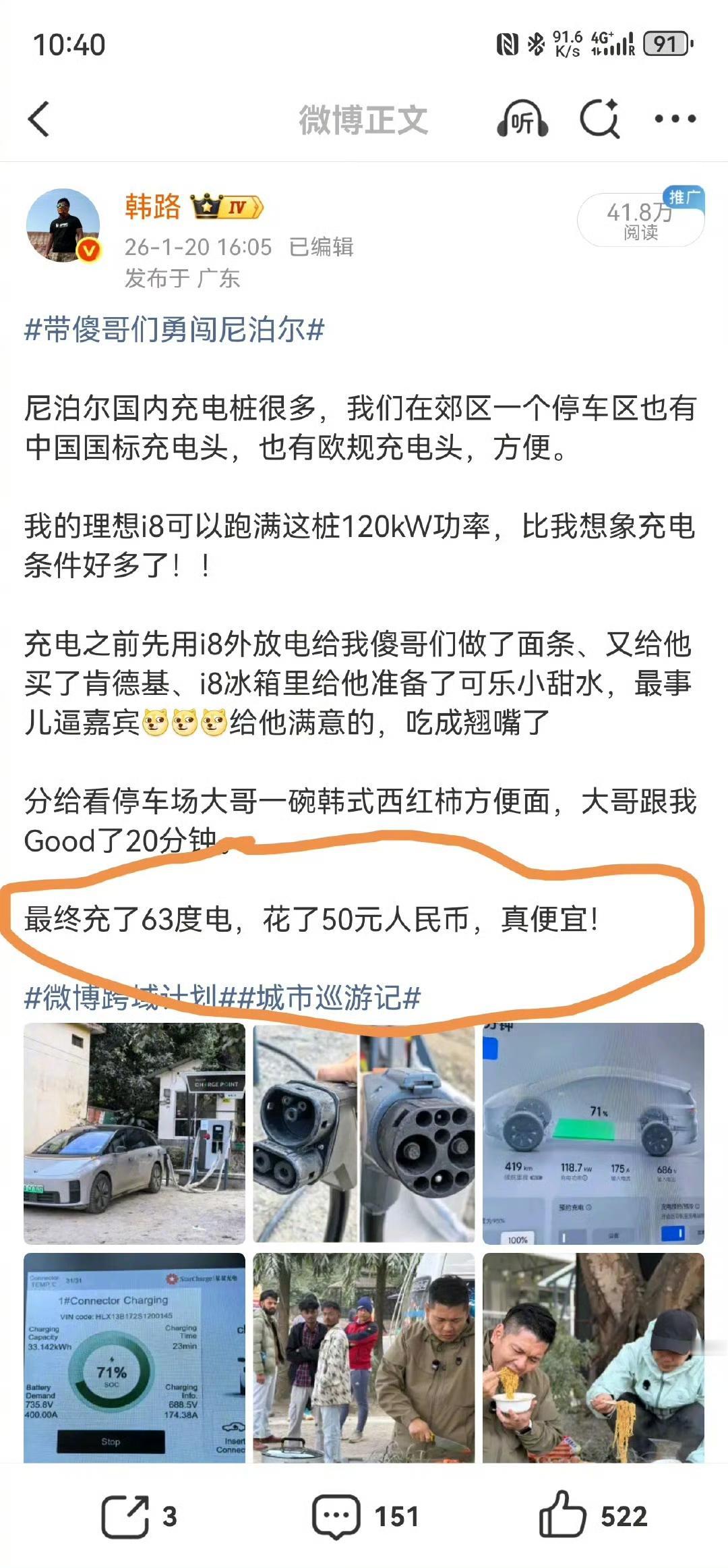 韩路:终于明白尼泊尔充电为何便宜了,因为本地人数学不行加脑子不行! 与国内的算法不同,他们是采用非常原始的,看你车上电量是多少?按百分比算,根本就没有算你车子的电池大小,车子电池越大车主就越占优势。 都已经有电车了,干嘛不按充进去的电算价格呢?