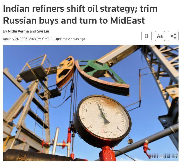 【印度已开始削减俄罗斯原油进口量,采购转向中东与美国】 路透社报道,受与美国