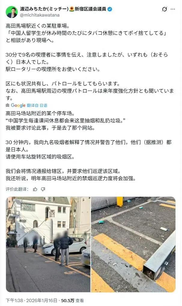 投诉中国留学生抽烟,结果调查发现都是日本人! 日本新宿区一名议员接到投诉,“高田马场站附近的某停车场,经常会有中国留学生在课间休息和乱扔垃圾的时候来此抽烟。”该议员去了现场后,30分钟发现9名吸烟者,结果都是日本人…抹黑中国,已经是日本媒体和民众的传统技艺了