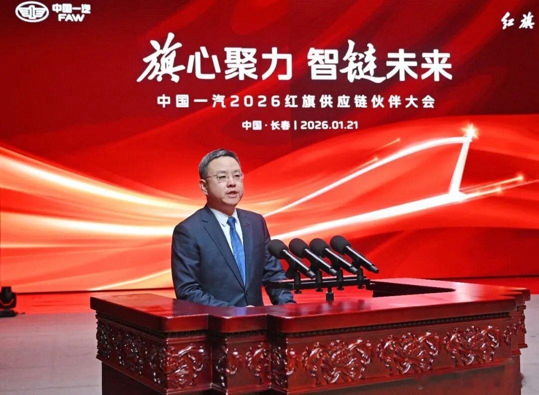 中国一汽 1月21日,中国一汽2026红旗供应链伙伴大会在红旗会堂召开。长春市委副书记、市长顾刚,市委常委、副市长江慧丰;中国一汽领导班子成员刘亦功、孙继光、方世力、陈彬、高璞出席会议。高璞主持会议。会上,长春市委副书记、市长顾刚致辞,中国一汽总经理、党委副书记刘亦功作总结讲话,党委常委、副总经理高璞宣读表彰决定,中国一汽领导为获奖供应链伙伴颁奖,供应链管理部作工作报告。刘亦功代表中国一汽和红旗品牌向长期以来支持“红旗”事业发展的各级领导、全体供应链伙伴表示感谢。他指出,2025年,中国一汽在党中央、国务院的坚强领导下,顶压前行、迎难而上,全年实现整车销量330.2万辆,营业收入突破5415亿元,整体经营效益稳步提升,位居行业前列。其中,红旗品牌三大子品牌协同发力,发展成绩尤为亮眼。