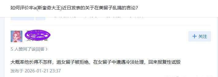 最近出现大量反驳斯奎奇大王(牢A)的回答的其行为逻辑是什么? 正常说斯奎奇大王的视频无非是猎奇故事分享,外面比他猎奇的故事有一大堆,为什么会有那么多人像是破防了一样集中攻击他? 若斯奎奇大王分享的视频是假的,看到有那么多人信,那么不应该高兴国内有那么多傻子,或者看乐子么? 若是真的也无非是另一个国家的小众故事,并不能影响到美国,除中国外牢美依然如日中天。 为什么会有大量的人耗费大量的时间和精力去反驳、攻击、诋毁甚至是用开盒这样的极端手段针对斯奎奇大王,像是有深仇大恨一样。甚至攻击相信斯奎奇大王分享故事的人们。 如若只是因为优越感的话,但投入的精力和时间像是应激了一样,从2025年12月中旬以后出现的大量有攻击性的回答(谩骂、诋毁、嘲讽等)都没停下来过,甚至有的账号最近只在有关斯奎奇大王的问题中回答,完全看不到其他的互动与回答,如果是因为优越感,完全没必要投入那么大的精力。但在12月初问题刚火的时候没有任何攻击性的回答和问题。 若是境外、殖人或者高华,他们关注这个问题的原因在哪呢?国内讨论的这个问题和他们没有什么直接关系啊。 是否存在留学或移民中介相关介入的可能性? 总感觉这次很不正常,各方都有参与,且反应有点过激了。 该现象背后各方的行为逻辑是什么有没有大佬帮忙分析下。 ------------------------------------ 一部分人被影响到了利益,一部分人被戳到了痛处出发敏感词儿了