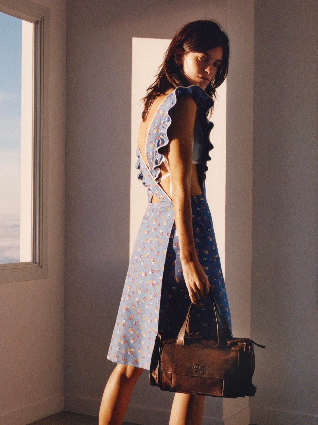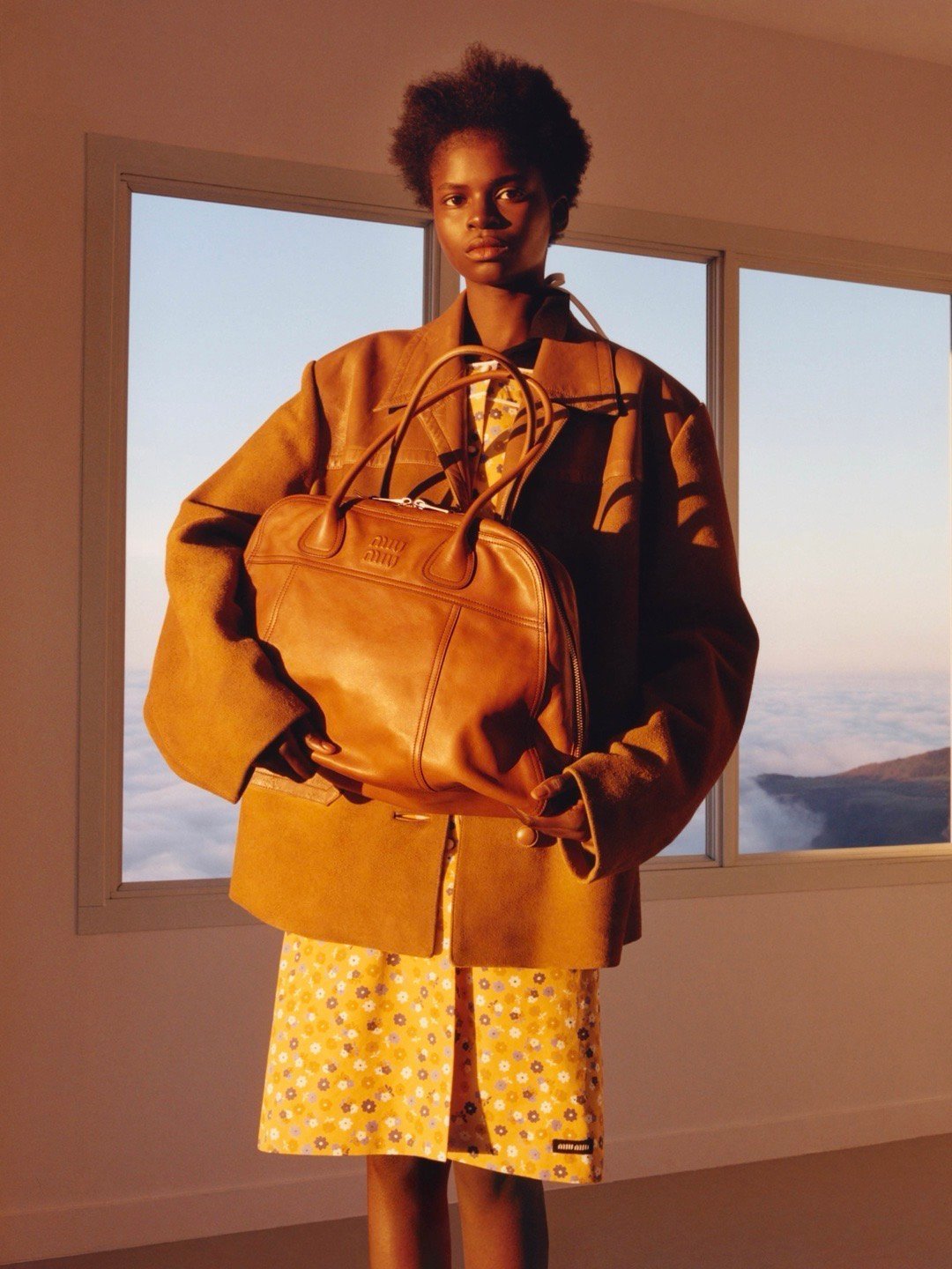 李庚希出演 Miu Miu 2026 春夏广告大片大片场景构建于云端之巅摄影:Jamie Hawkesworth
