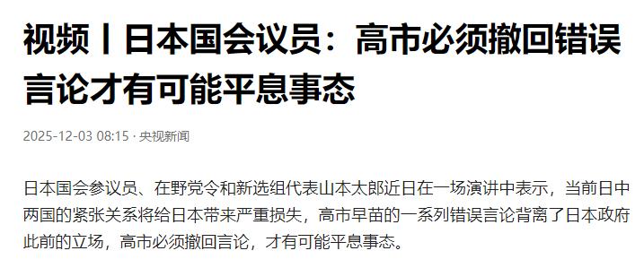 日本认怂了? 据日本媒体报道,日本参议院议员山本太郎公开表示,现在中日之间的问题