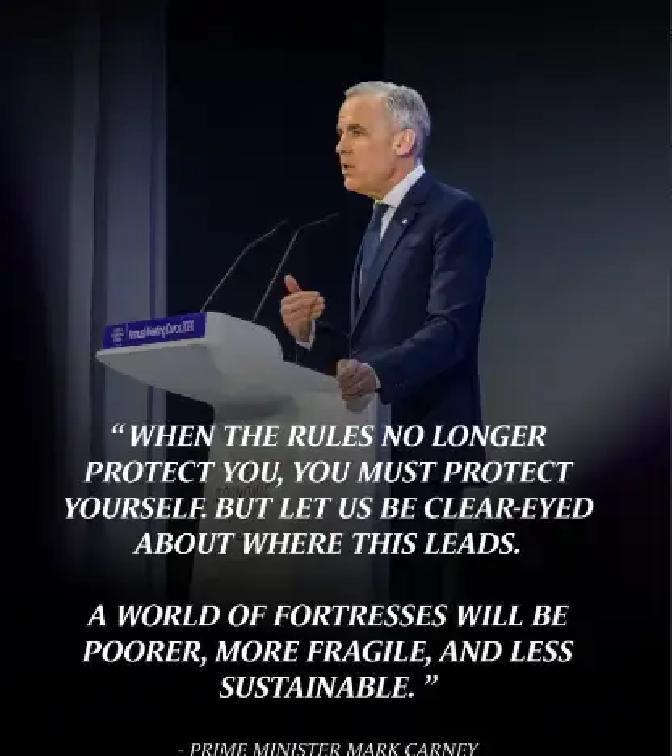 1月20日这场达沃斯演讲,其实在问:旧秩序还能撑多久? 在瑞士小镇达沃斯的论坛会场,卡尼提到“几十年前那套规则”,却放在2025年前后的多极格局里审视,等于当众承认:西方一手打造的“基于规则秩序”,在今日多方博弈下已经对不上现实场景。 他点出一个刺眼细节:当自称“规则制定者”的少数国家,一边打出多边主义口号,一边在过去几年里频繁发动单边制裁、搞一轮又一轮贸易壁垒,连老牌盟友之间都在能源价格、关税数字上彼此算账,这个体系从内部就开始松动。 有意思的是,他没有点名任何一国,却用“盟友之间”“选择性遵守”等字眼,指向近年多起跨大西洋争端案例:从一度飙升的天然气报价,到几轮相互加征的关税清单,都是“共同体”内部的数据裂缝,也让“阵营”这个词显得没那么整齐。 卡尼在演讲后半段强调,“秩序的终结,不等于混乱的开始,而像一次新平衡的重算”,这句话放在连续多年的地缘冲突、产业链重组、全球投票结构变化之后,更像是提醒:谁再指望回到一国独大的“旧正常”,就是对时间轴视而不见。 在我看来,他既是在为西方争取在新秩序里保留话语权,也在被动承认:未来几十年,规则将由更多参与方共同写进条款和数字,而不再只出自一张桌子的一侧。你会更期待一个由多方共同修订规则的世界,还是仍然认为效率需要少数“领跑者”说了算?