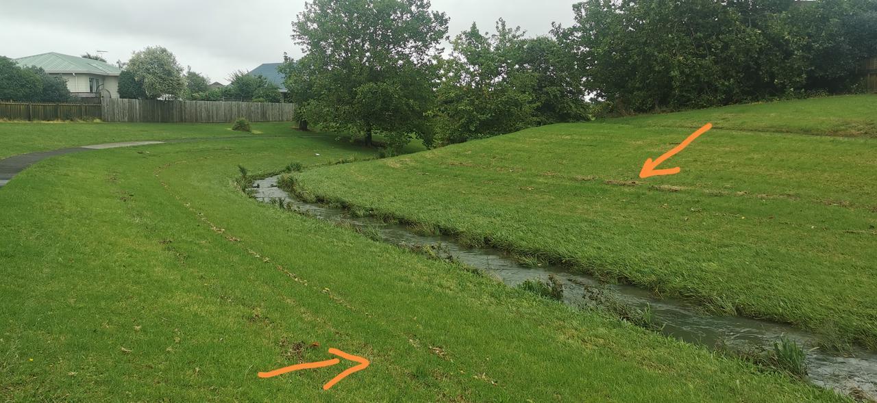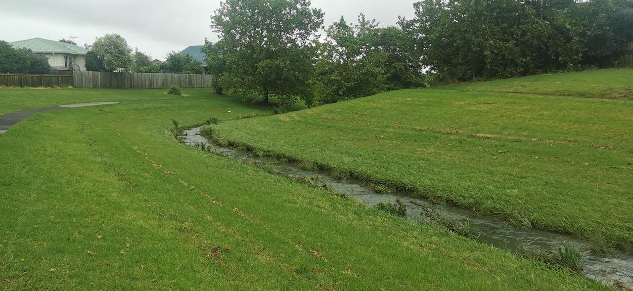新西兰雨污分流做的很好。你看图片中的小溪流就是雨水归集在一起,溪流宗宗,清水荡漾。遇到大雨,万流归宗,这里就会形成宽达十余米的河流(图片二的标识处)。由于两边的草地茂盛,日常维护的也好,所以并不会形成严重冲刷。日常,溪流两边的草地就是他们的公园,很简单。人行步道也只有1米多宽,很是幽静。