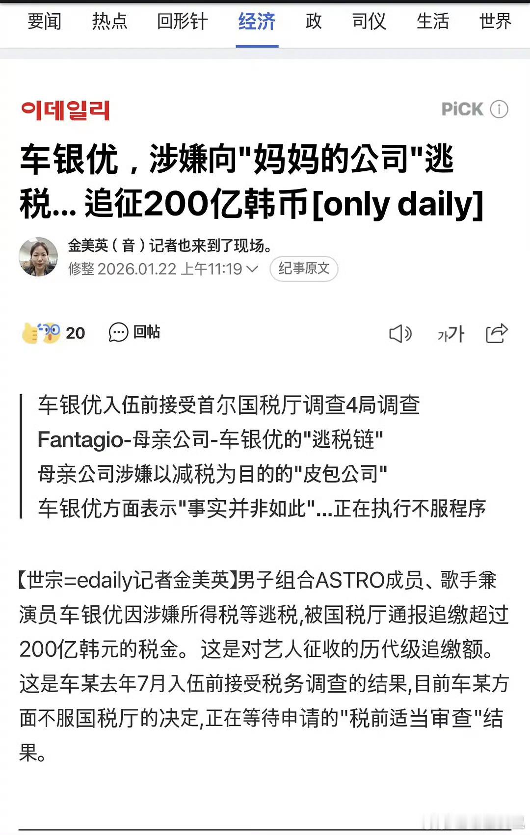 车银优涉嫌逃税被调查