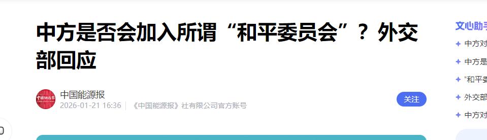 特朗普失算了!   中国公开摊牌:拒绝加入“和平委员会”?   最近,一份出自美国总统特朗普团队的文件正在悄悄流传,内容足以让整个世界的外交圈为之一震。   这份草案的核心思想简单粗暴,给世界主权标价。谁能拿出十亿美元,谁就能买走一个全球核心事务的永久决策席位。   几百年来的国际关系准则,在这里被一套赤裸裸的付费规则彻底取代。   按照计划,一个所谓的“和平委员会”将被建立起来,会员资格分成两档。只要在委员会成立的第一年内,有国家愿意支付超过十亿美元,就能锁定一个永久席位。   拿不出这笔钱的国家,则只能申请一个有效期三年的普通席位,到期后能否留下,全看主席的心情。这位首任主席,就是特朗普本人,并且他还为自己保留了一票否决权。   加沙,是这个计划的第一个试验场。委员会打算绕开当地政府,直接插手战后重建的所有环节,从资金如何分配到地方由谁维持安全,都由他们说了算。   这套玩法一旦成功,随时可以复制到乌克兰、委内瑞拉或是任何一个出现危机的地区。   过去棘手的国际冲突,在这里被转化成了可以运作的项目,成了少数参与者的生意。   在发起人看来,联合国已经不顶用了,一百多个国家七嘴八舌,拖慢了所有决策。他们想要一个能关起门来开会、自己说了算的圈子,像公司开董事会一样解决问题。   同时,美国也不想再独自承担全球干预的巨额开销了,沉重的国债已经让它感到疲惫。   于是,他们把加沙重建这件事,巧妙地包装成一个投资项目,吸引沙特、阿联酋这些富裕国家入局。   对这些国家来说,花钱买到的不只是地区影响力,还有实打实的经济回报,更重要的是,一张来自美国的政治保单。这笔交易,在他们眼里或许并不算亏。   这种操作手法,其实一点也不新鲜。先是退出各种国际组织甩掉责任,现在又想自己组局收门票。这其实就是抛弃义务,只想要权力和金钱,把自己的利益摆在了所有规则之上。   这个计划听起来滴水不漏,但现实却很骨感。六十多个受邀国里,明确站出来的只有匈牙利等少数几个。   美国的传统盟友们都保持着距离,加拿大态度模糊,法国则直接表达了对联合国被架空的担忧。   甚至连以色列都公开批评这个计划的人选和流程有问题,直接削弱了整个计划的可信度。   中国的态度一直很清楚,坚持以联合国为核心的现有国际体系。这背后是一种截然不同的世界观,世界上的事情,终究要靠大家一起商量着办,规则也应该由大家共同来制定。   和平与发展从来都不是可以用钱衡量的商品。如果连国家主权和发言权都能明码标价,那这个世界留给弱小和贫穷国家的,就只剩下沉默,全球秩序将退化成一场赤裸裸的金钱游戏。   真正的安宁,源自平等的对话和公认的规则,不是靠金钱和强权堆出来的空中楼阁。   信息来源:《中方是否会加入所谓“和平委员会”?外交部回应》,中国能源报,2026年1月21日。