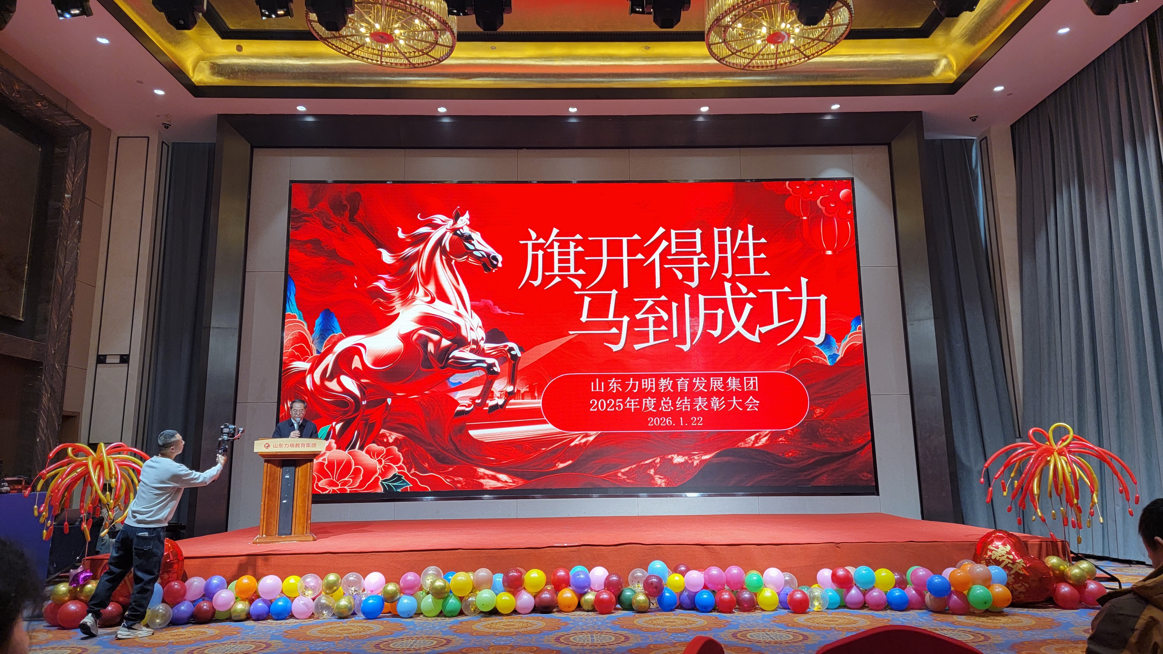 山东力明科技职业学院2026年年会盛典已于泰安金盛大酒店大举行,主题为"同心逐梦 向新而行"。该活动是学校教职工年度盛会,包含文艺表演、互动游戏、抽奖等环节,校领导与全体教职工欢聚一堂,共迎新春。泰安·泰安金盛国际大酒店