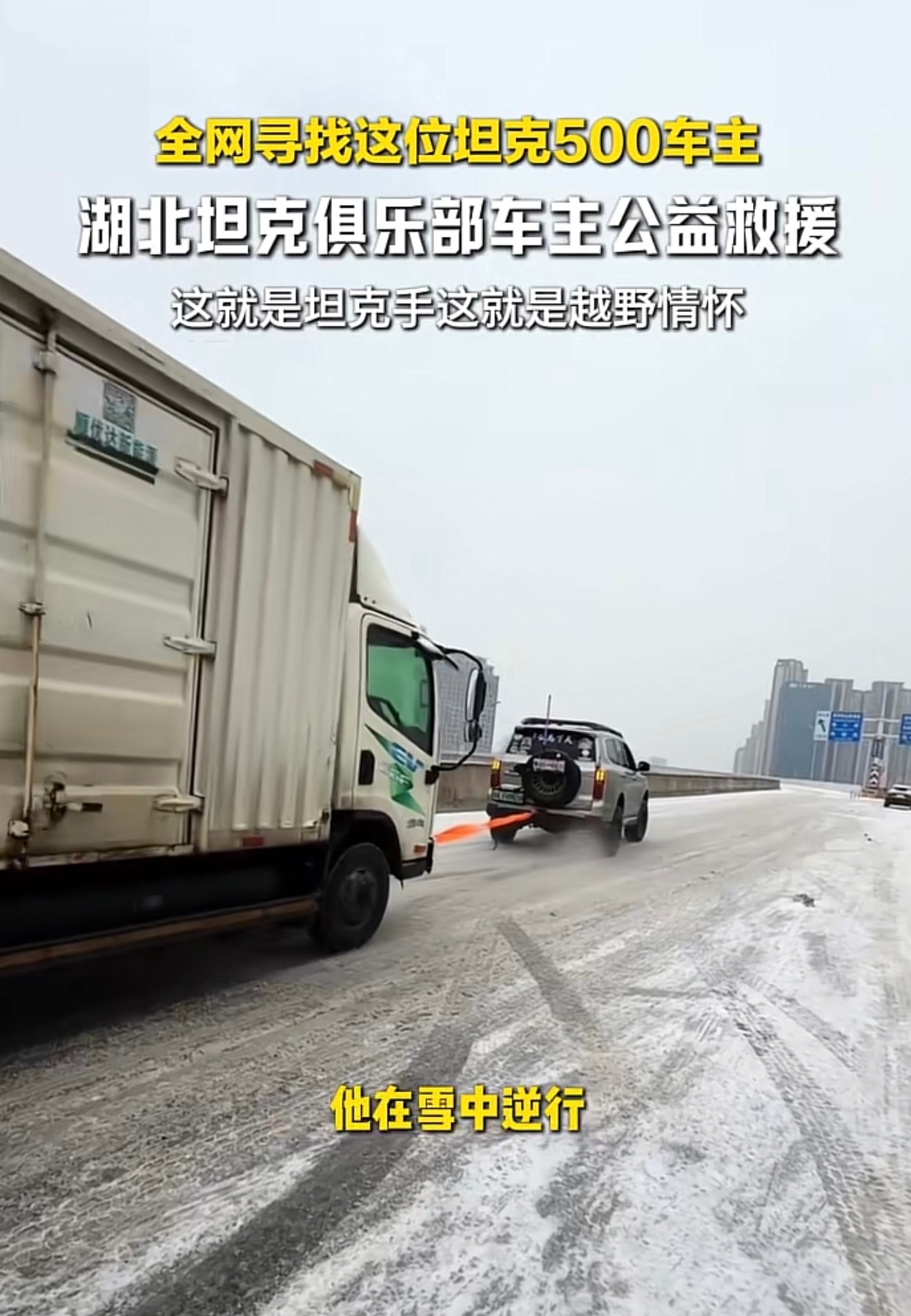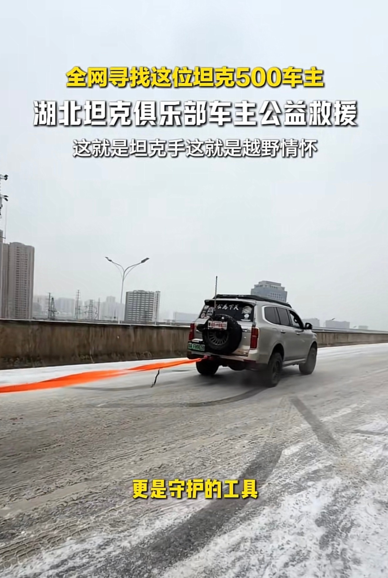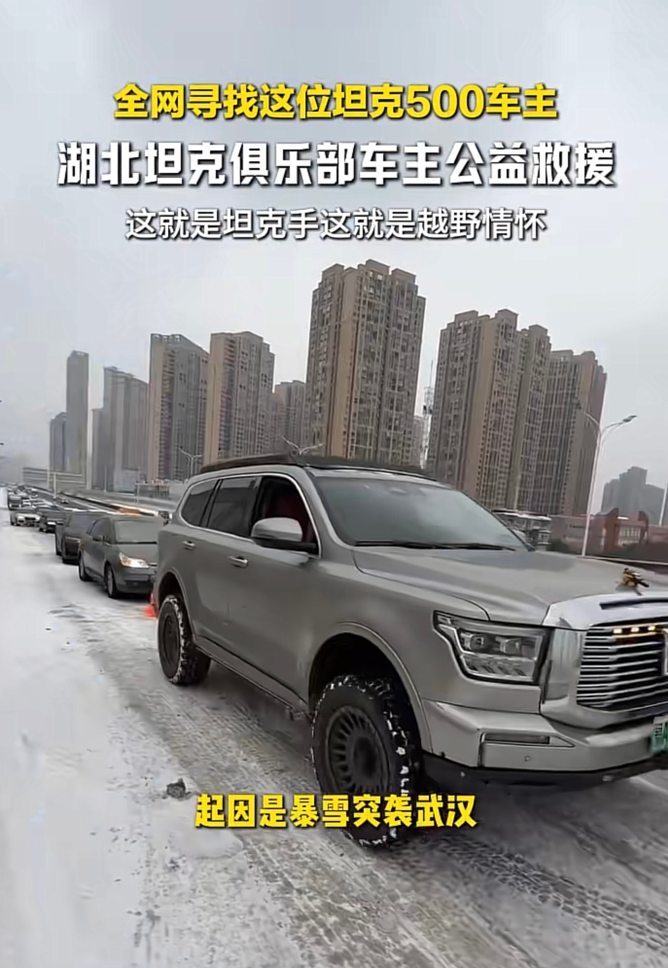 全网都在找这位 鄂AFH9659 坦克500车主最近湖北下大雪 很多车被困高架桥上这位大哥开着自己的坦克500连救15辆车好人干好事必须曝光他 让他火 点赞