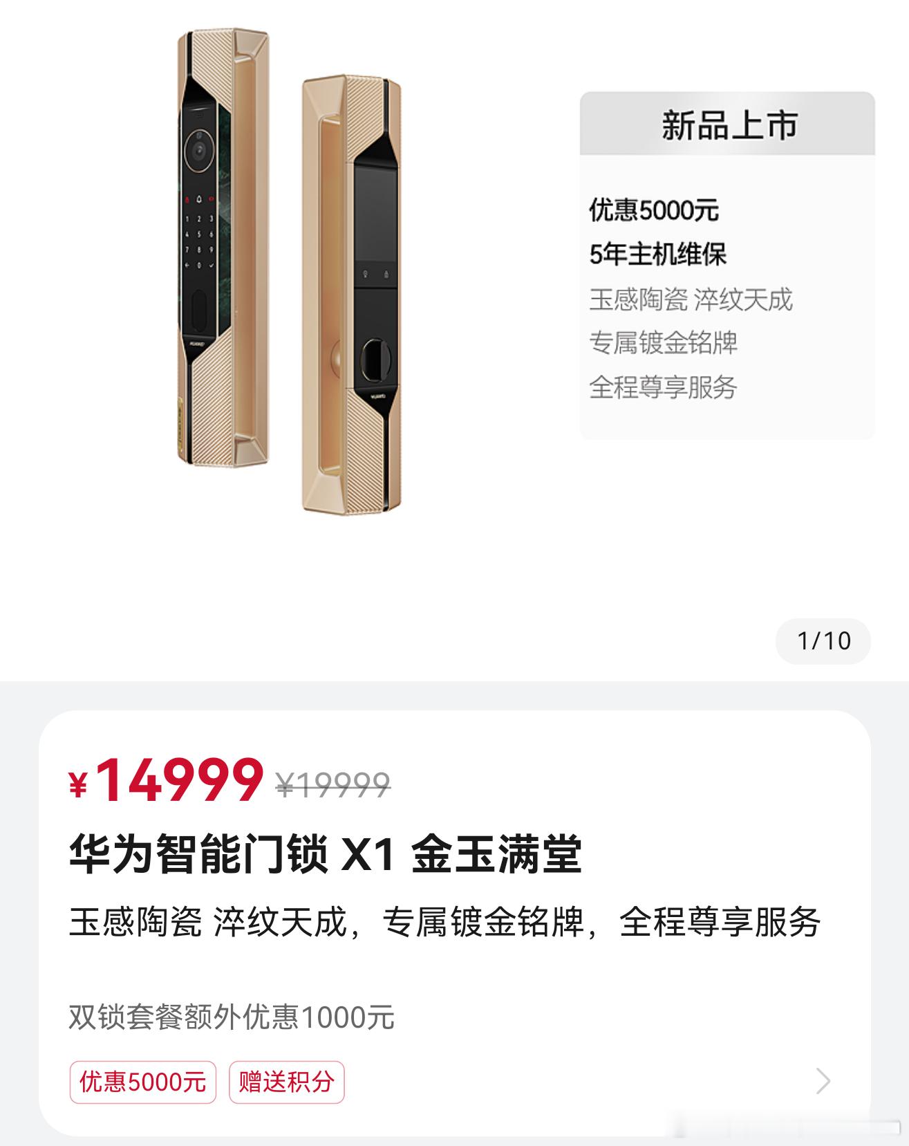 华为智慧门锁金玉满堂上市了尊贵这块是拉满了,价格也确实不便宜。
