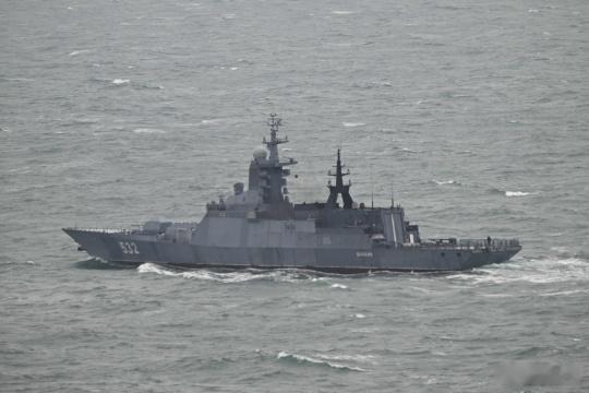 北海海域,荷兰皇家海军的DSS Galatea号巡逻舰护航了俄罗斯海军的 20380型“勇敢”号护卫舰和斯科别列夫将军号油轮。