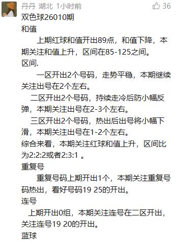 湖北辛丹丹再度携号出击,聚焦双色球第26010期,精心推出一组心水号码:红球02,08,14,19,20,32;蓝球04,08。 细看本期红球,与上期形成斜连之势的号码竟有三枚——02、14、20,可谓走势暗合;而上期红球重号则落在19之上。连号方面,可重点关注19与20的携手并出。整体奇偶分布呈现1:5格局,其中红球胆码聚焦14与32。 蓝球方面,精选四码03、04、08、09,均小于上期蓝球10,尤其对04与08寄予厚望。本期蓝球是否会延续偶数之势?谜底尽在今晚开奖,让我们拭目以待!