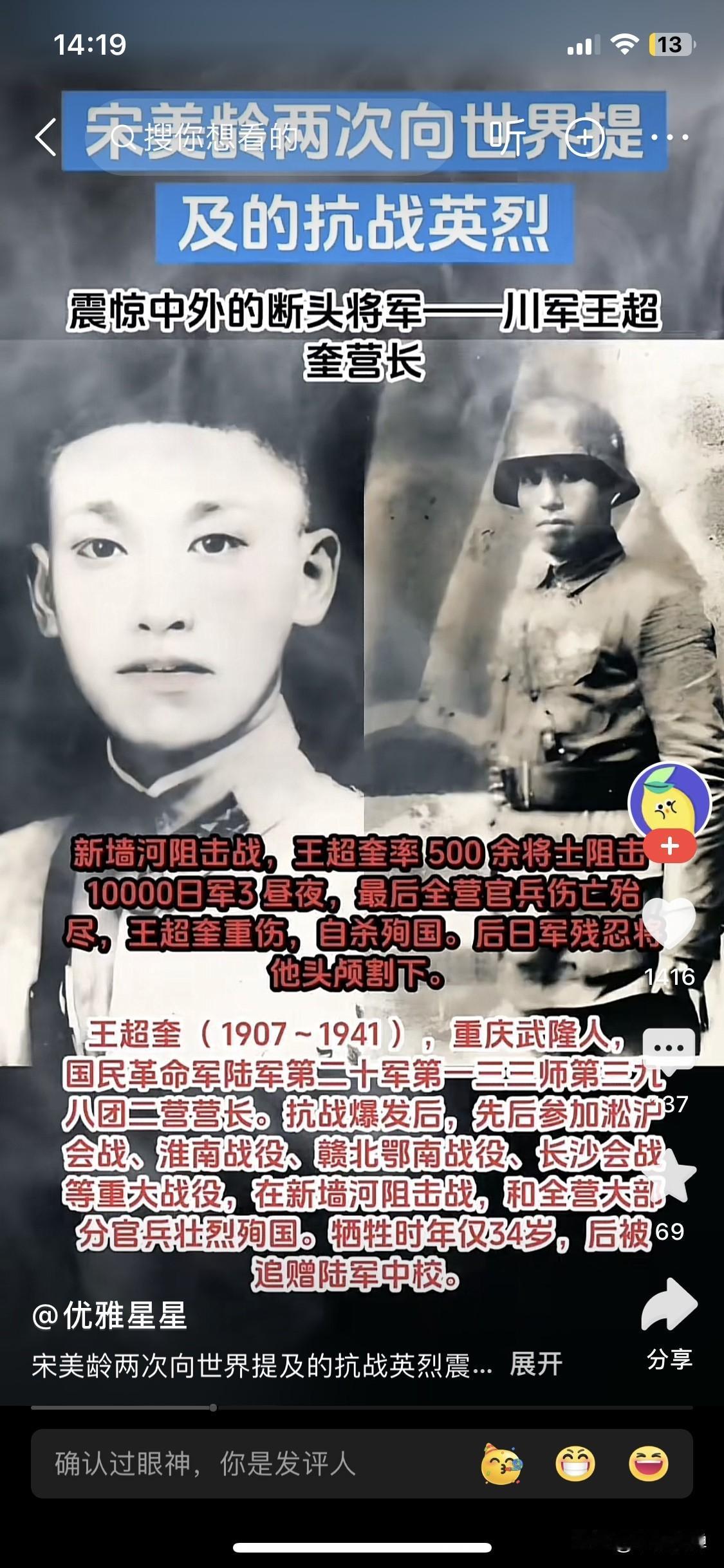 川军抗战的历史,就是一部悲壮的中国近代缩影。川军营长王超奎,带领部队在长沙会战新墙河阻击日寇,全营玉碎,最后时刻,面对阵地全部牺牲的将士,重伤的王营长自杀殉国。而被川军营阻击损失巨大的日寇,愤怒残忍割下王营长头颅泄愤!谁说中华没有好男儿,谁说川军不血性!子孙后代应当永久祭拜王营长英魂!