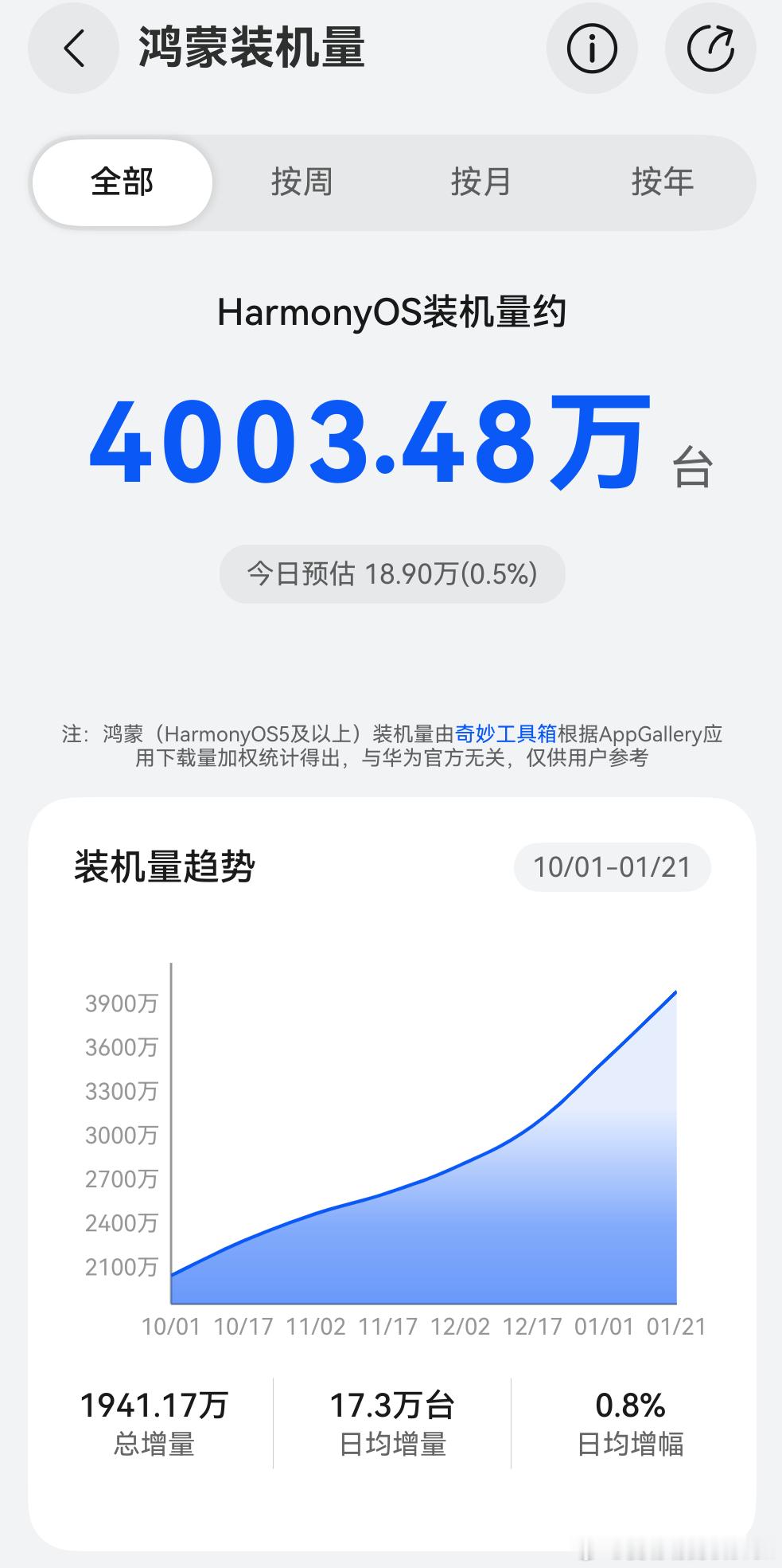 鸿蒙系统装机量突破4000万台,虽然有些胳膊肘往外拐的不爱听,但是事实就是鸿蒙系统的每一个里程碑都是国产操作系统的新高度。
