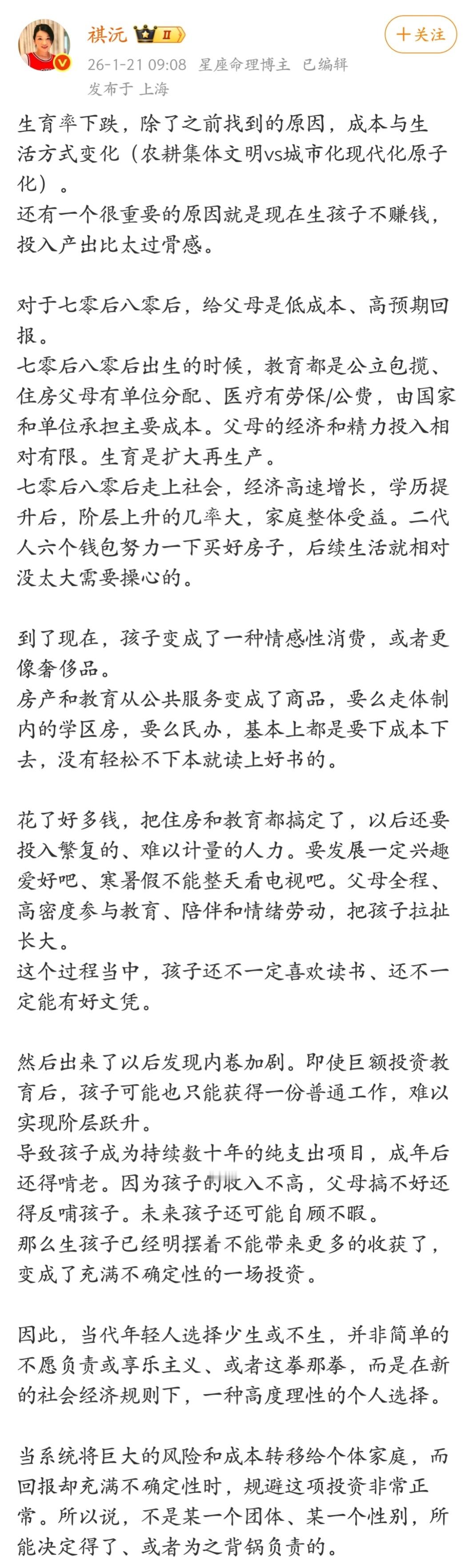 生育率下跌,有一个很重要的原因就是现在生孩子不赚钱,投入产出比太过骨感。