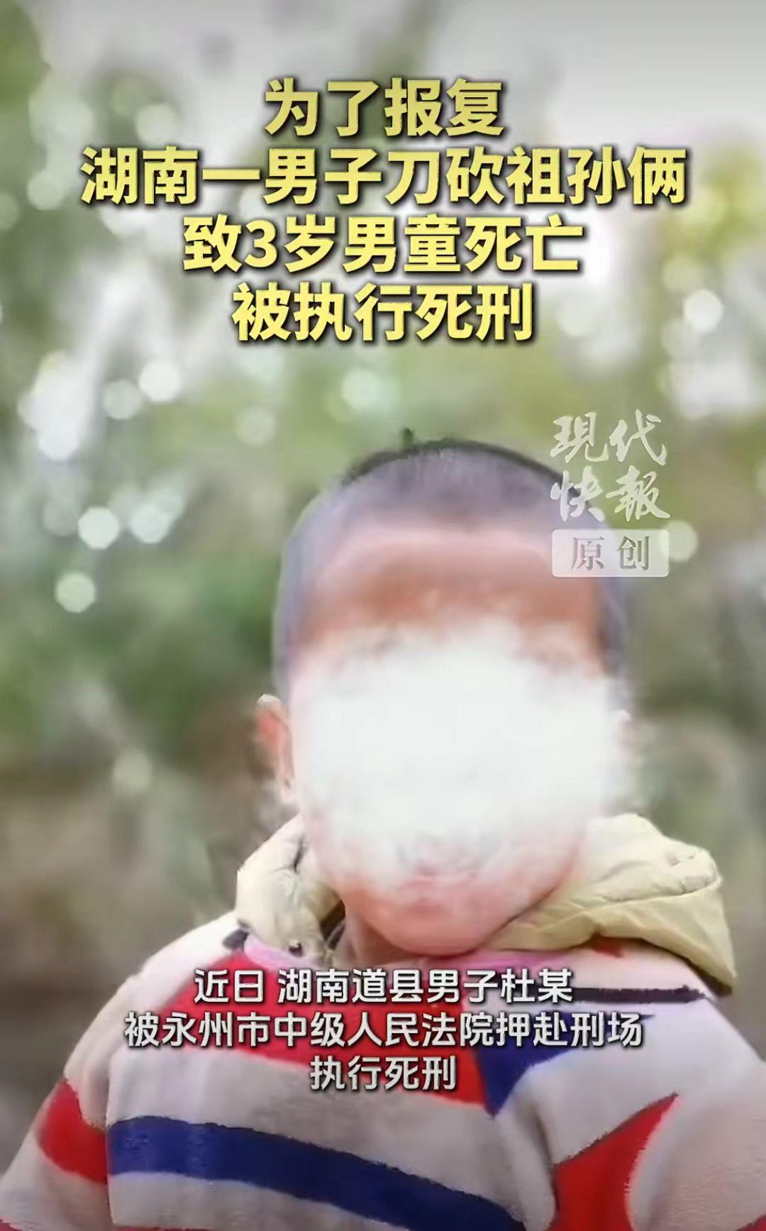 杜某和同村陈某两人,因为农田排水问题发生争执,闹大后,杜某被判刑并且赔偿陈某。 杜某便怀恨在心,路过陈某家时,看见陈某3岁的孙子小亮在门口玩耍,就用刀割破了孩子的颈部,不解气,又向孩子的腹部捅了一刀,孩子奶奶跑过去救孩子时,又被杜某连捅数刀,孩子最终抢救无效死亡,孩子的奶奶重伤。 人们常说远亲不如近邻,就为了农田排水这点小事就要斗个你死我活,值得吗? 杜某因为排水问题和陈某发生争执后,闹大后,杜某被了判刑,还要给陈某赔偿。 判刑出来后,杜某又和同村的王某发生纠纷争执,一气之下又用菜刀将王某砍伤。 砍伤人后杜某也害怕了,便偷偷的跑到山上躲起来了。 第二天,杜某思考再三决定去派出所自首,结果路过陈某家时,看到孩子后,心生歹念想要报复陈某,就这样把3岁大的孩子给杀害了,孩子的奶奶捅成重伤。 杜某当时还看见陈某另外三个孙子,因为孩子跑的快,没追上,孩子们才逃过一劫。 这是有多大的仇恨,一个孩子都不想放过。 最终在逃跑的过程中,被警方抓获了。真是天网恢恢疏而不漏,终究要为自己的行为付出代价。 2025年3月,法院判处杜某死刑,赔偿11万元。杜某不服判决提出上诉。 连孩子都不放过,被判死刑后,还觉得自己委屈了,判刑判重了。 2025年7月,最高法院裁定,驳回上诉,维持原判。 农村排水矛盾 永州冲突 冬日生活打卡季