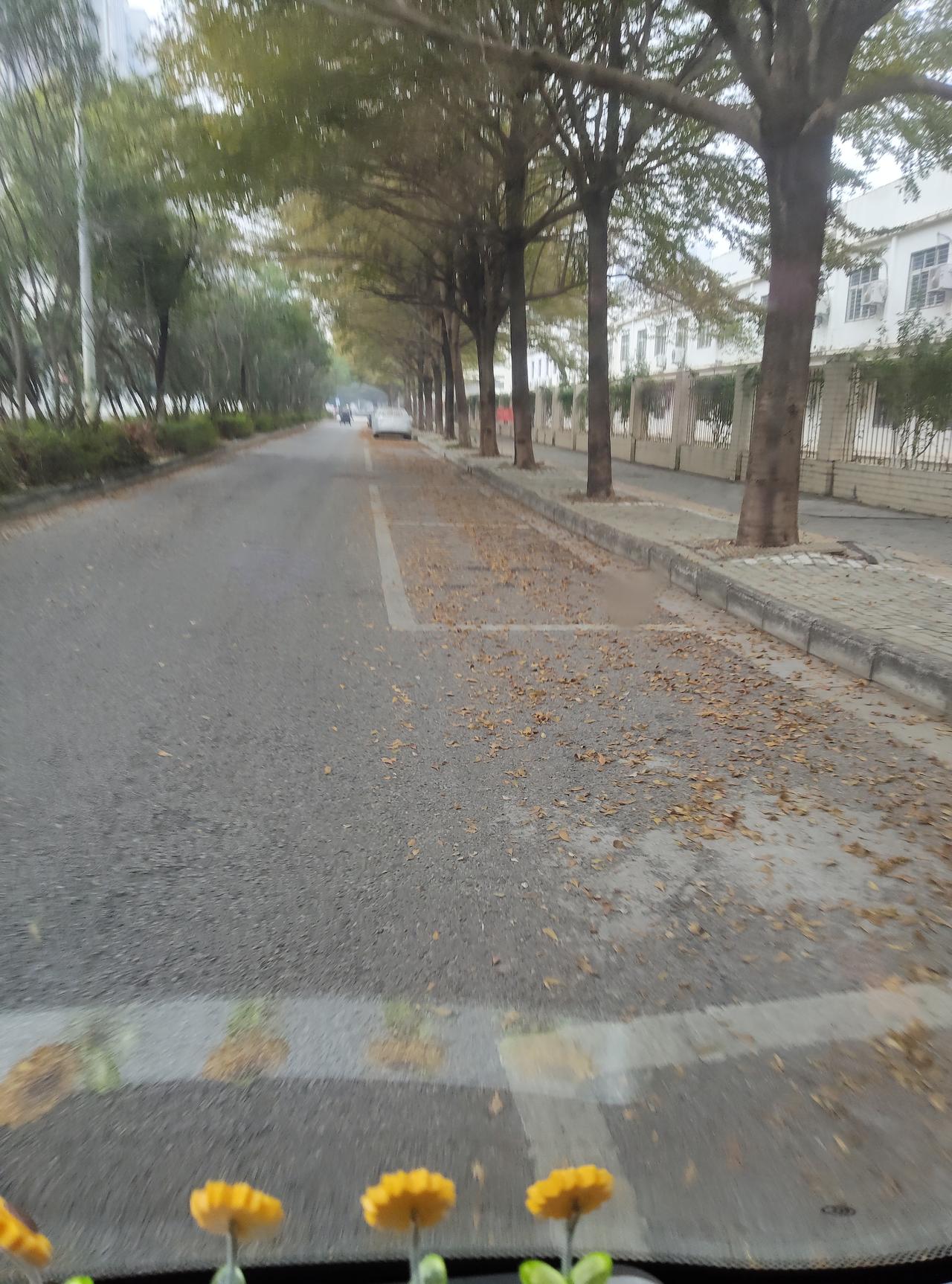 今早开车出门,一进这条路就瞅见满地碎金似的落叶。两边的树叶子黄了大半,风一吹就往下飘,车轮碾过去“沙沙”响,还怪好听的。 路边停的车顶上也沾了几片,衬着这灰蒙蒙的天,倒添了点秋天的味儿。这季节就是这样,叶子落得悄咪咪的,等反应过来,路都快被铺成黄地毯了。 开慢了点,怕碾坏这好不容易攒起来的秋意——毕竟再过阵子,想瞅这落叶,就得等明年啦。 深秋落叶景 落叶飘舞的小路