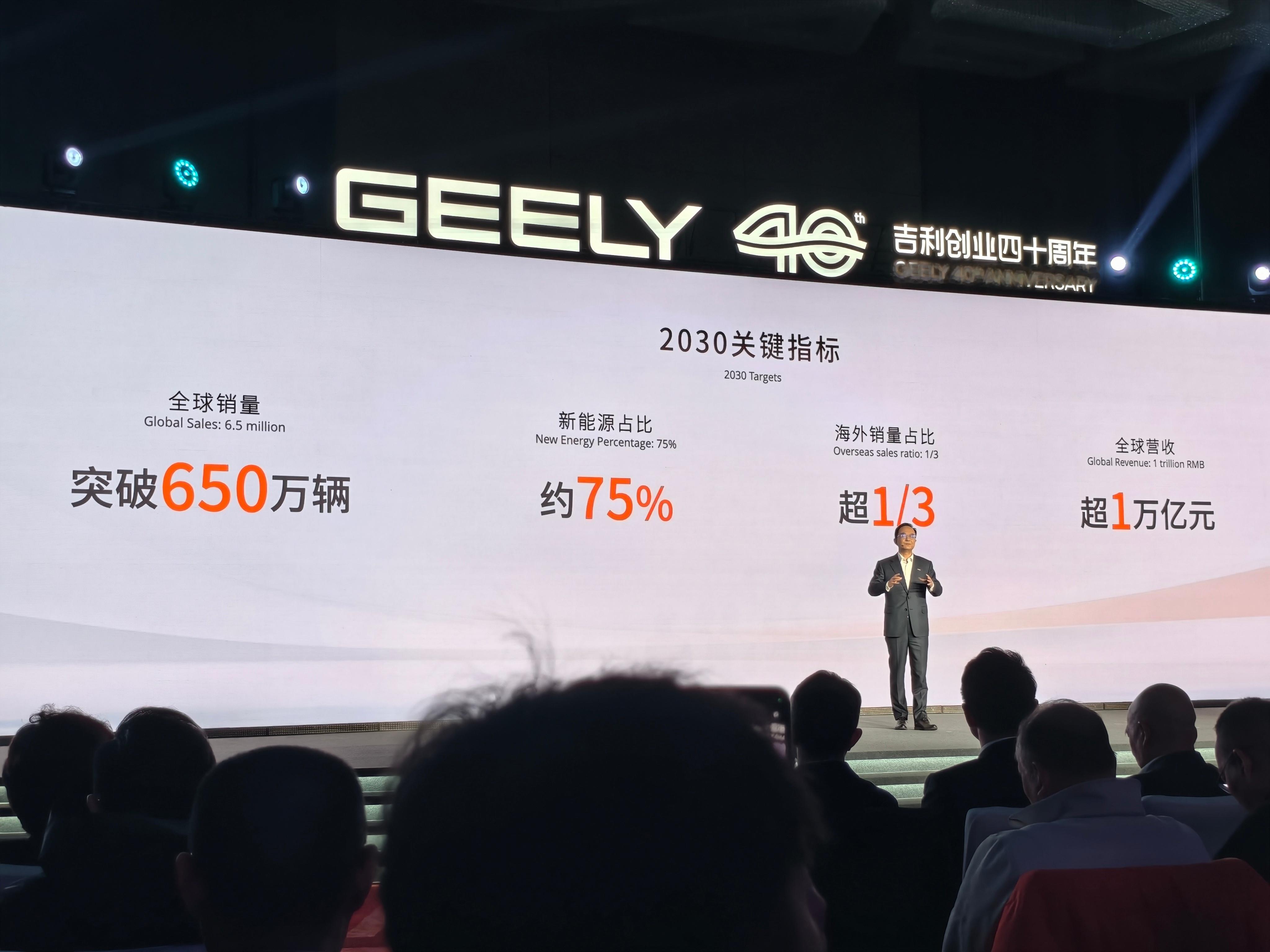 吉利控股 2030 战略目标:实现年销量突破 650 万辆,营收突破一万亿,跻身全球 TOP5。