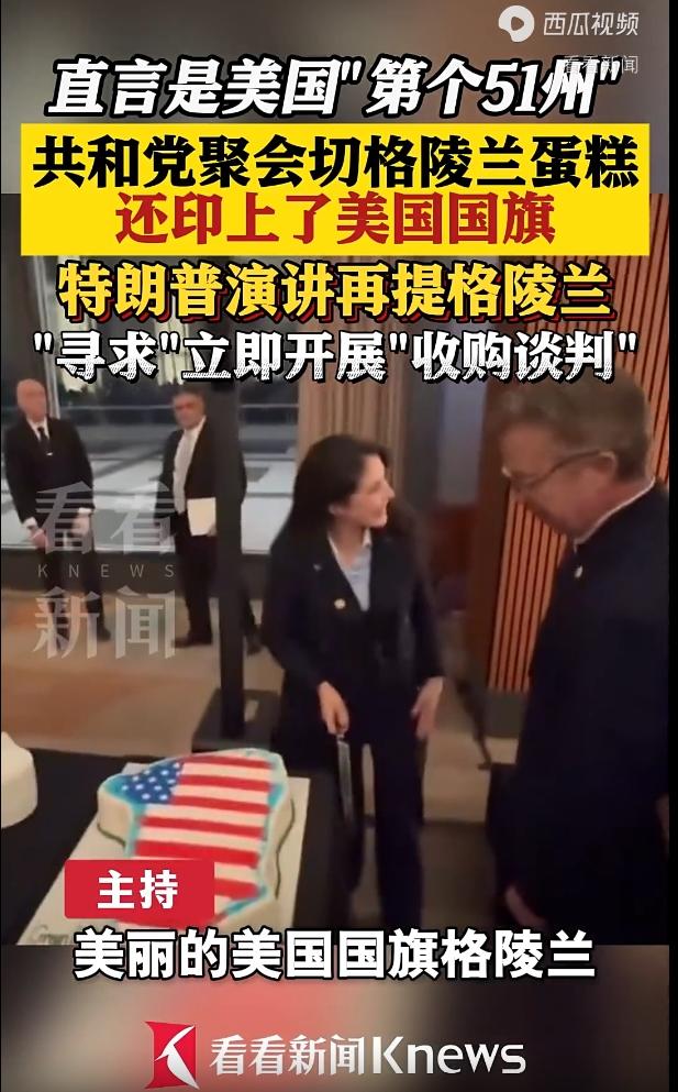 赤裸裸,太赤裸裸了,美国共和党议员,直接摆出格陵兰岛的地图蛋糕,提前庆祝其成为美国的第五十一个州。 这种强盗行径,不但厚颜无耻,更让人想起当年晚清中国被列强割据瓜分的情形,与现在何其相似。 一百多年过去了,当日的美国还是强盗,本性丝毫未变,只不过这次把枪口对准了自己昔日的盟友; 没有丝毫礼义廉耻,没有丝毫道德敬畏; 以中国人的思想是无法理解的,因为建国不到250年的美国,一直就是奉行强盗逻辑,想要的就要得到,得不到的就要抢到; 中国必须强大、强大、再强大;直到拥有压倒一切的力量,不惧怕世界上任何的挑衅;才能让中国人民拥有长久的和平稳定的生活; 否则的话,看看我们的周边有多少饿狼,还有美国这头恶虎在虎视眈眈; 中国怎么能不发展,不前进呢? 落后就要挨打,我们永远也不要做挨打的那一方,我们不主动打别人,但是也绝不允许任何人来动我们!