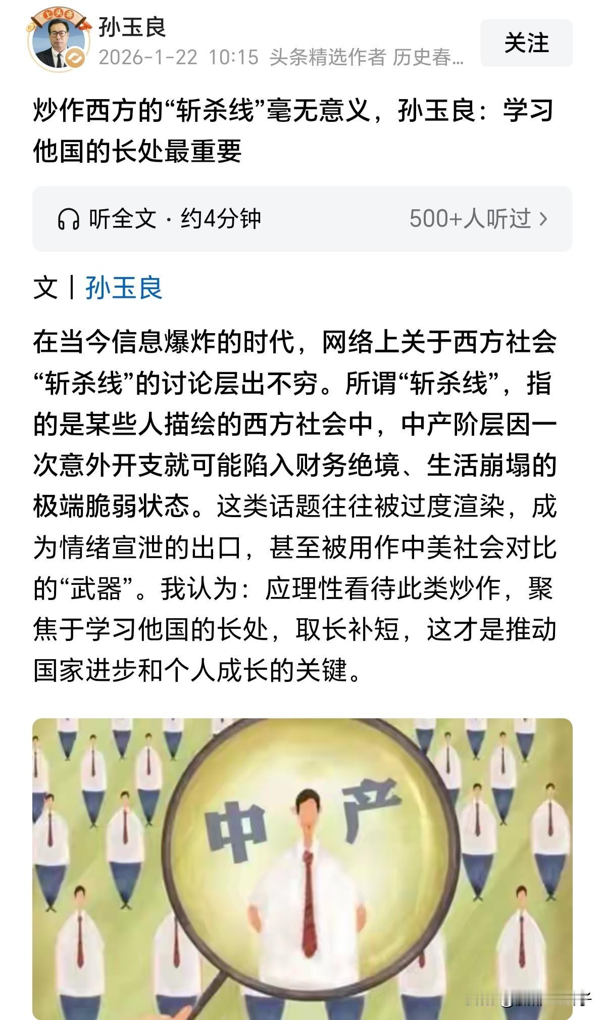 为什么说中国的这群文科教授狗屁没用呢,这位历史专家就是一个很好的例子,大家只是把真实的美国报道出来,这群貌似“理中客”的文科教授就出来装模做样了。 什么“要学习他国的长处,取长补短;如果一味的贬低资本主义会产生自满情绪”,这些不疼不痒的话还用得着你说? 炒作西方斩杀线有没有意义,当然有意义。这么多年以来,中国的媒体界、文艺界、教授群体、文科知识分子都是一群崇洋媚外的东西,膝盖从来就没有站起来过。 很多导演以拿西方的奖为荣,为此长年累月的拍摄抹黑中国的电影;很多大学的文科教授为了职称,去西方大学水一个文凭,就能在中国大学提拔;很多中国的媒体人,常年以当西方人的狗为荣,经年累月的写文章贬低中国人。 而“斩杀线”破圈以后,中国的老百姓就知道了资本主义到底是一个什么“吃人的制度”,那些跪在地上的文科教授、媒体人、导演再吹欧美的时候,你就直接大耳刮子抽他。