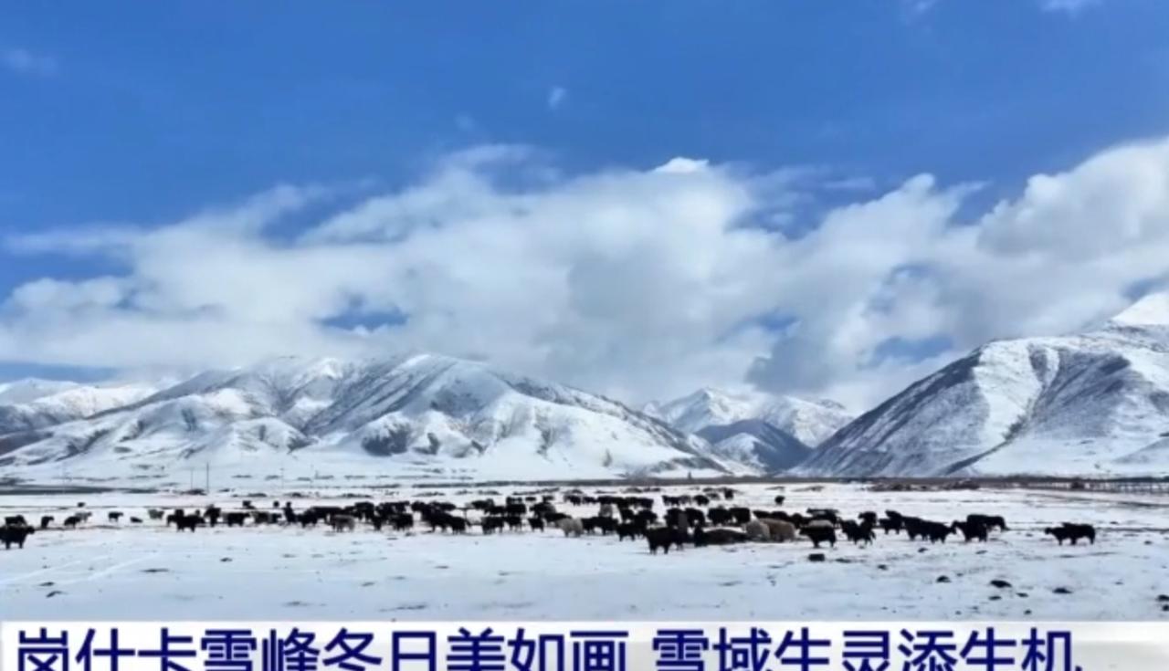 冬日的岗什卡雪峰,是一幅壮阔的高原画卷。当朝阳跃过云海,为雪山镀上一层金橙,流云在雪脊间翻涌,与澄澈蓝天相映成趣。山脚下,牦牛群在雪原漫步,黑棕相间的绒毛在阳光下泛着暖光;岩羊则轻巧地跃过覆雪的岩壁,为这片静谧雪域增添灵动生机。这是高原独有的冬日盛景,是自然与生灵共舞的诗意篇章。