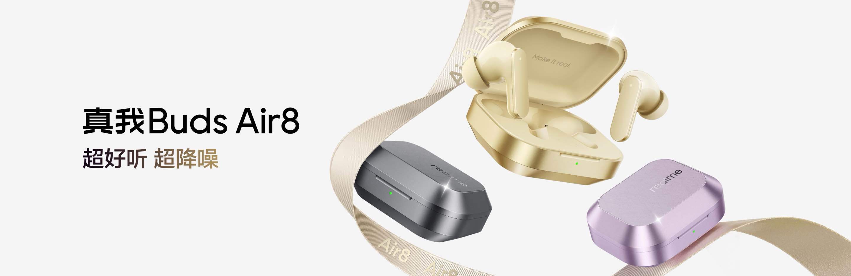 真我Buds Air8携手真我Neo8一同发布【大师色】 大师金/大师紫/大师灰三色,生物基有机硅皮质+金属漆涂层【音质】 11mm+6mm分频双单元,LHDC 5.0+Hi-Res小金标认证【降噪】 55dB超深降噪,5000Hz超宽频宽, 支持耳道自适应+六麦通话降噪 【AI赋能】 支持30种语言实时互译58小时超长续航、IP55防尘防水、45ms低延迟、三设备互联,电脑秒连首销价269元;搭配真我Neo8购买,仅需239元。