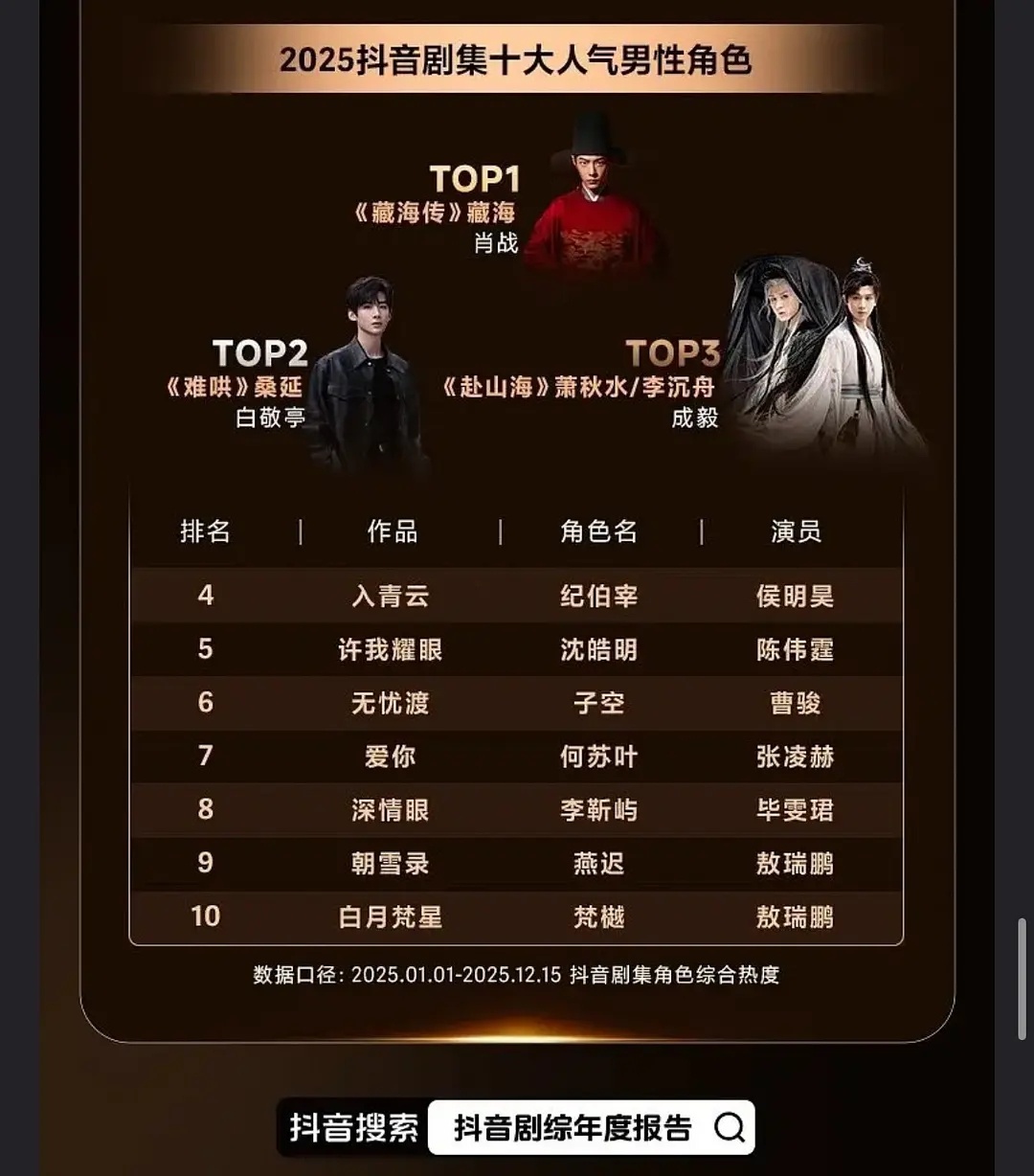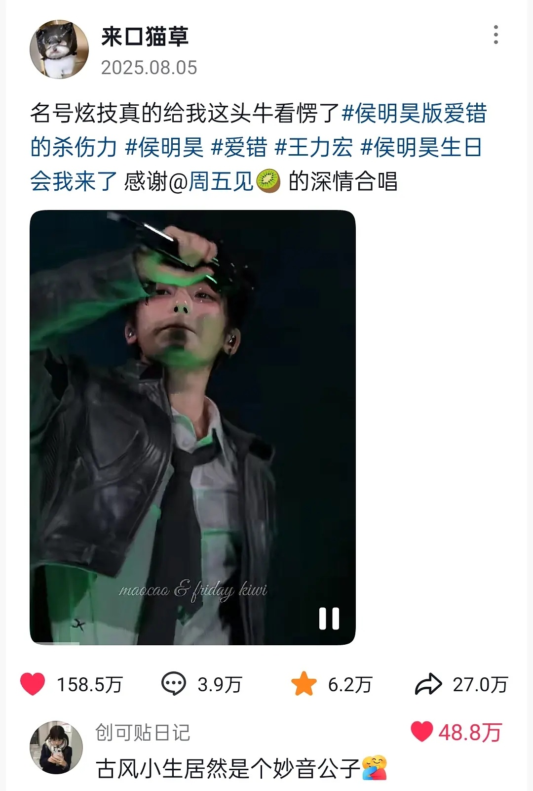 侯明昊播剧没有声量?那看看真实数据1️⃣三部一番剧在抖破百亿 2️⃣个人角色抖音tag破30亿 占年度第四 2025入围95生☝🏻3️⃣个人角色📚 占年度前10 4️⃣超话数据稳居钻2 峰值超like15000 新增商务15+ 官宣车代🈶 5️⃣最近在抖评论素人 个人内赞突破100w6️⃣生日会音乐节古风小生梗大出圈