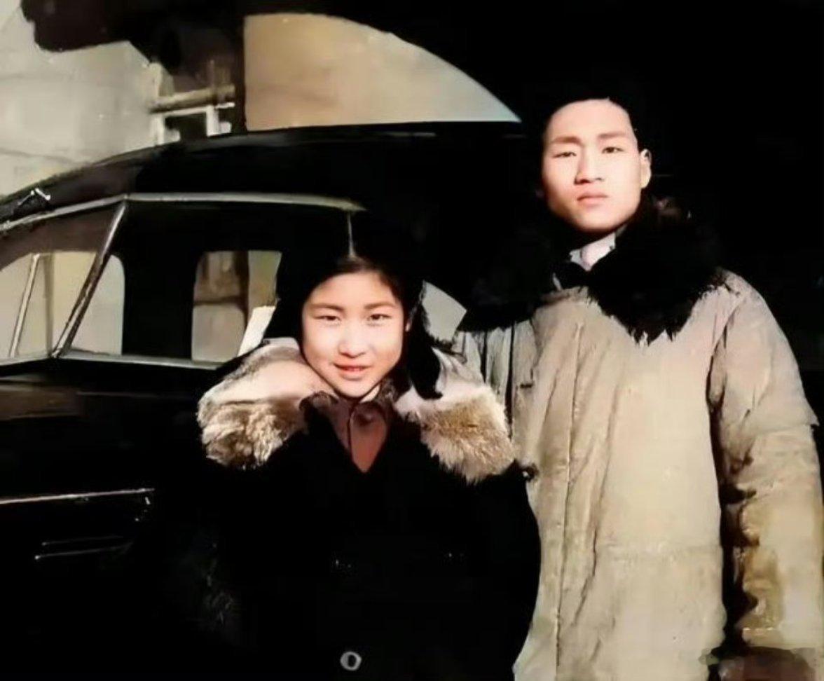 1948年,毛岸青去火车站接妹妹李敏,兄妹俩拍照留念!