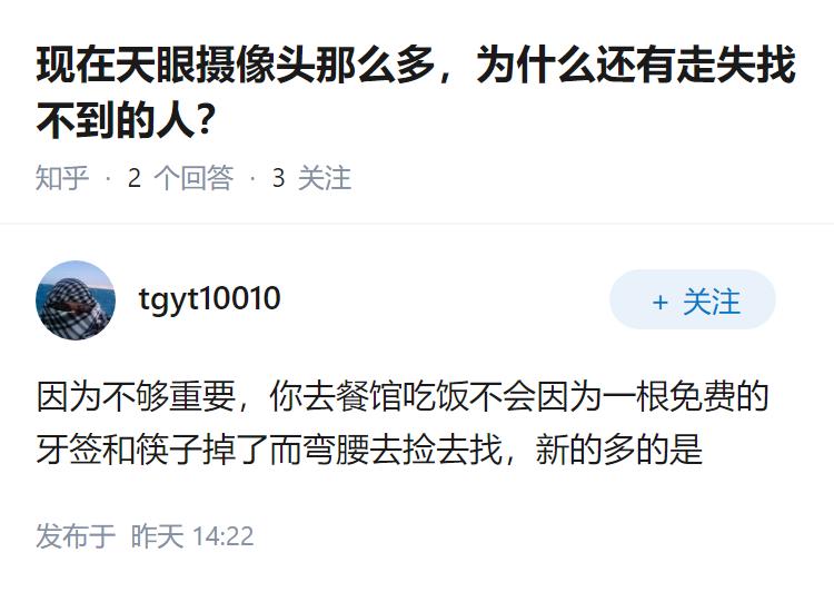现在天眼摄像头那么多,为什么还有走失找不到的人?