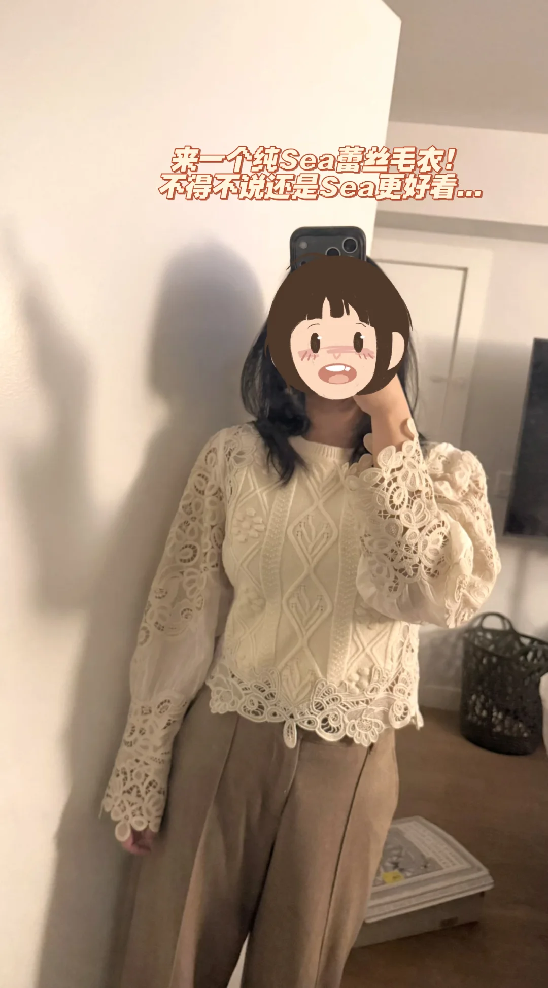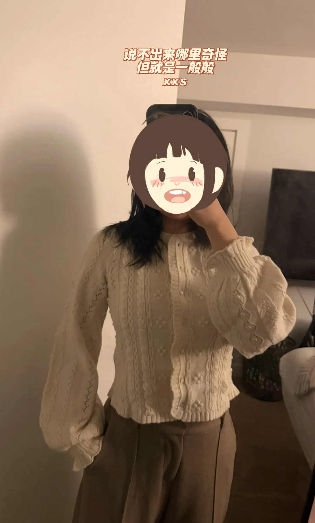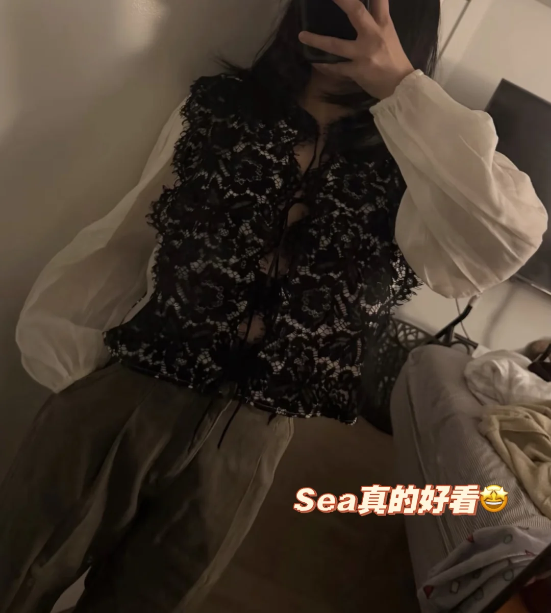 1️⃣蕾丝毛衣抢到一件xxs,尺码能穿但说不出来哪里奇怪,可能还是码太小了?宽松点或许好点,目前不打算留…