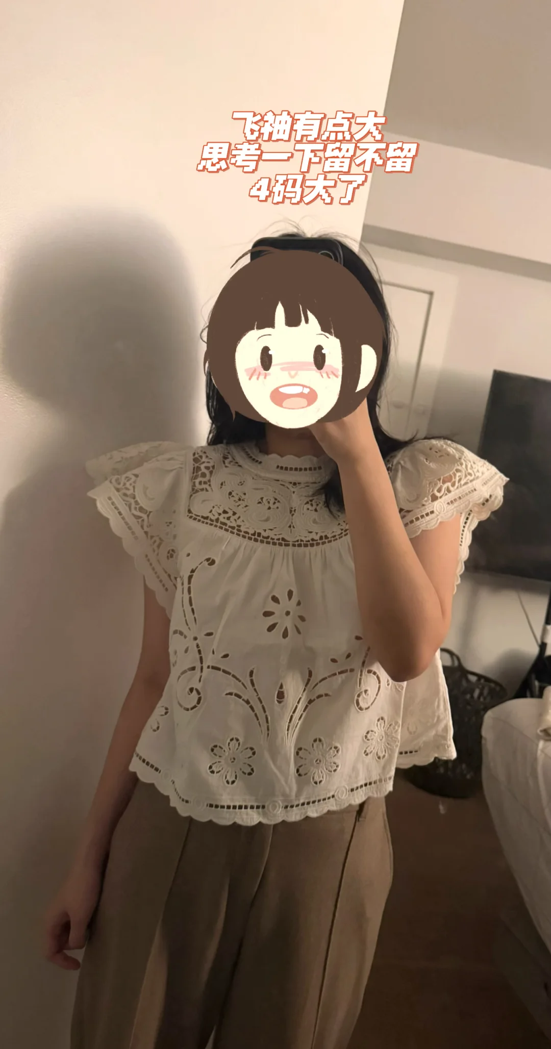 2️⃣短袖飞袖很大,按平时size买结果大了,腰部版型是宽松的,考虑一下要不要换最小码试试。