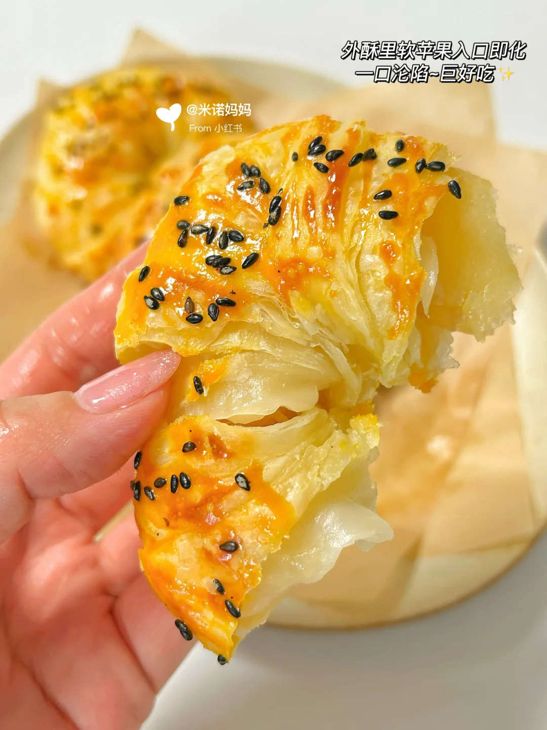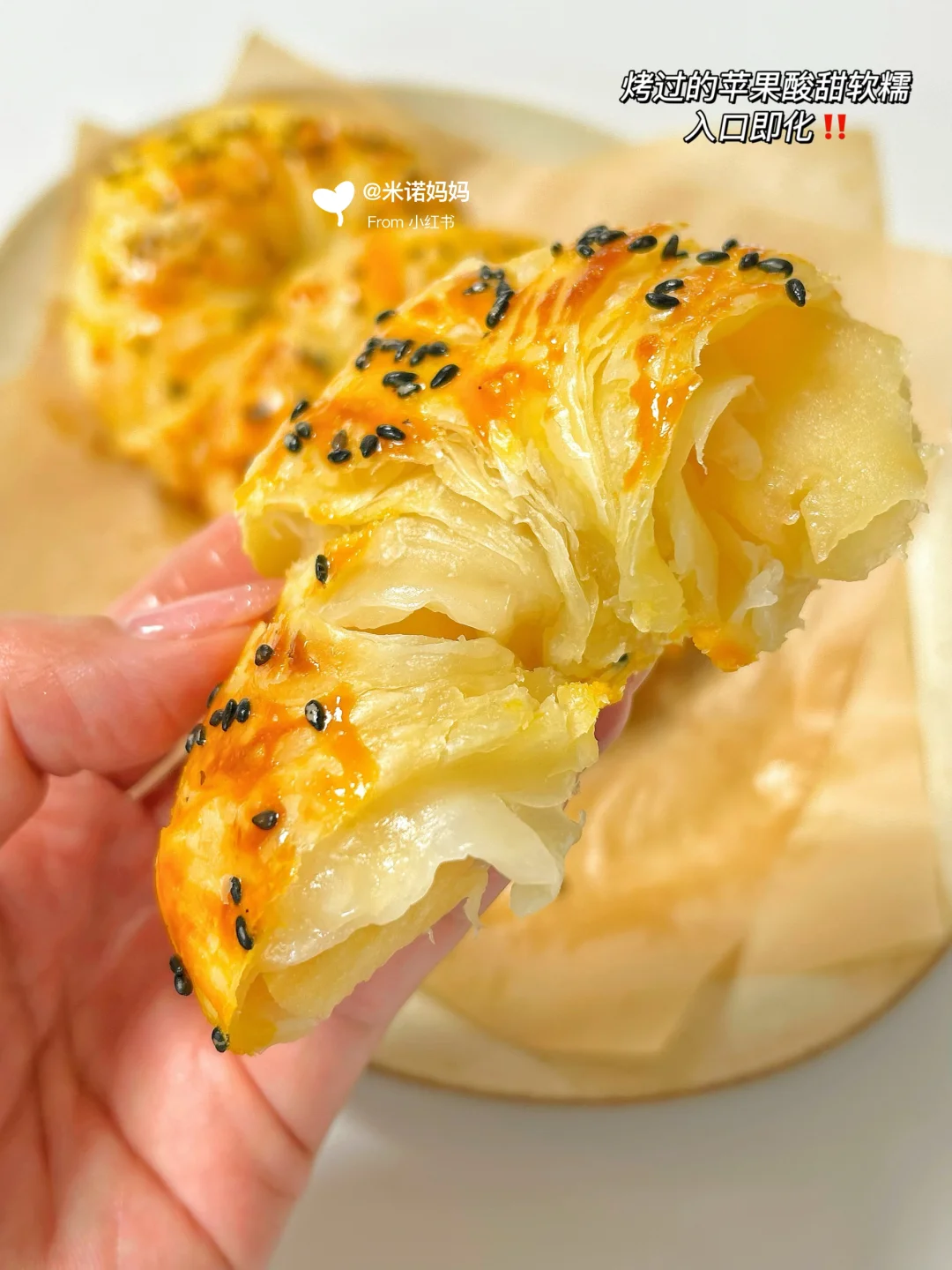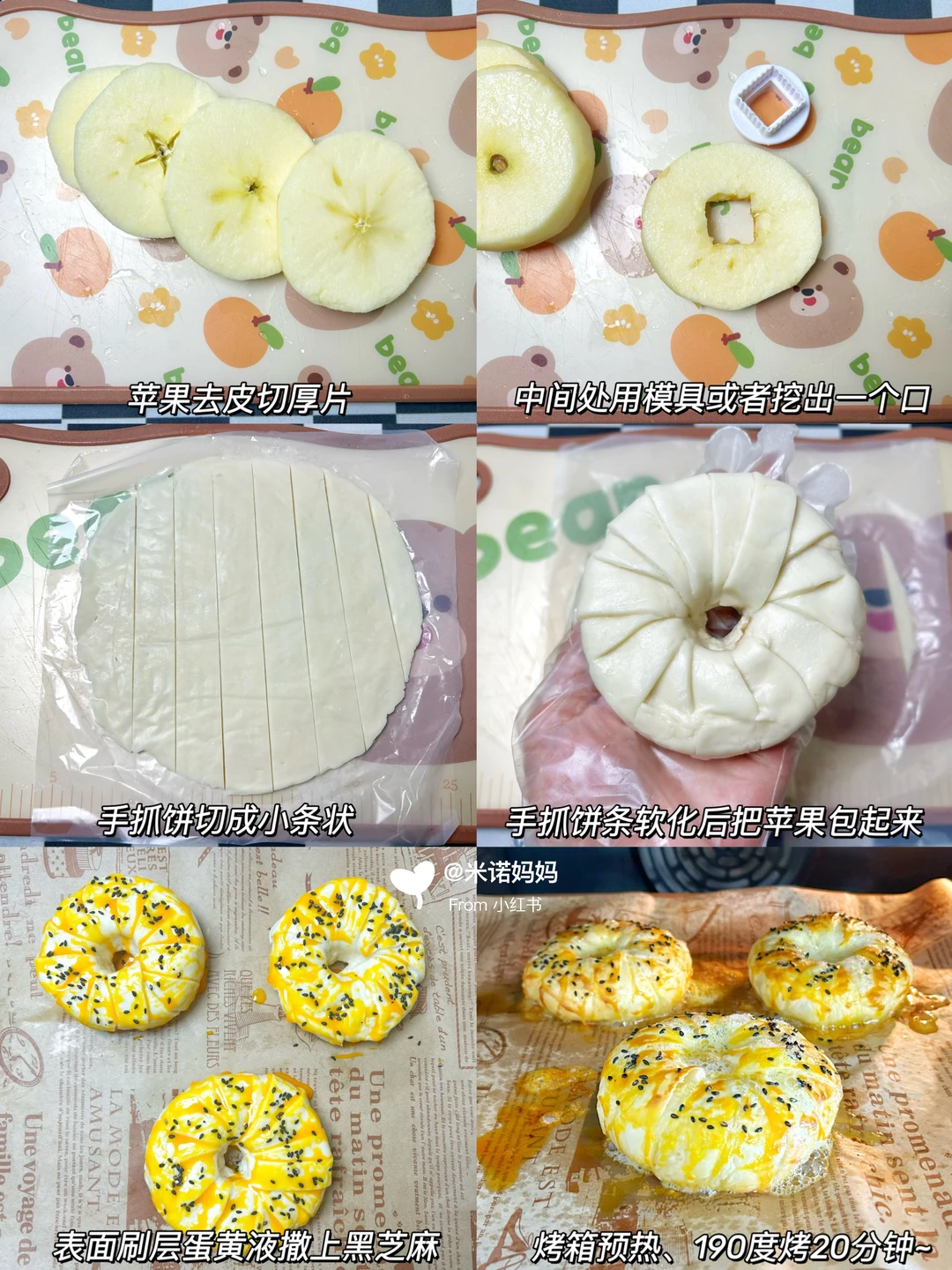 Hi 大家好呀❤️ 我家小朋友每周点名要吃的苹果甜甜圈来啦[太阳R] 零难度,家里有手抓饼就能做,外酥里软烤过的苹果酸甜软糯入口即化,每次做这个小朋友吃不够,可做早餐或下午茶零食,一定要去安排上呀[拥抱R] - 🌈准备食材 手抓饼 | 苹果 | 蛋黄液 | 黑芝麻 👩🏻🍳具体教程请看图文更清晰明了哦~ ✔️手抓饼无需解冻,切小条后室温软化即可~ ✔️烤箱温度与时间根据自家烤箱脾气做调整哦~ - 大人小朋友都超爱吃的苹果甜甜圈,只需三种食材就能做,等大家交作业啦[派对R]