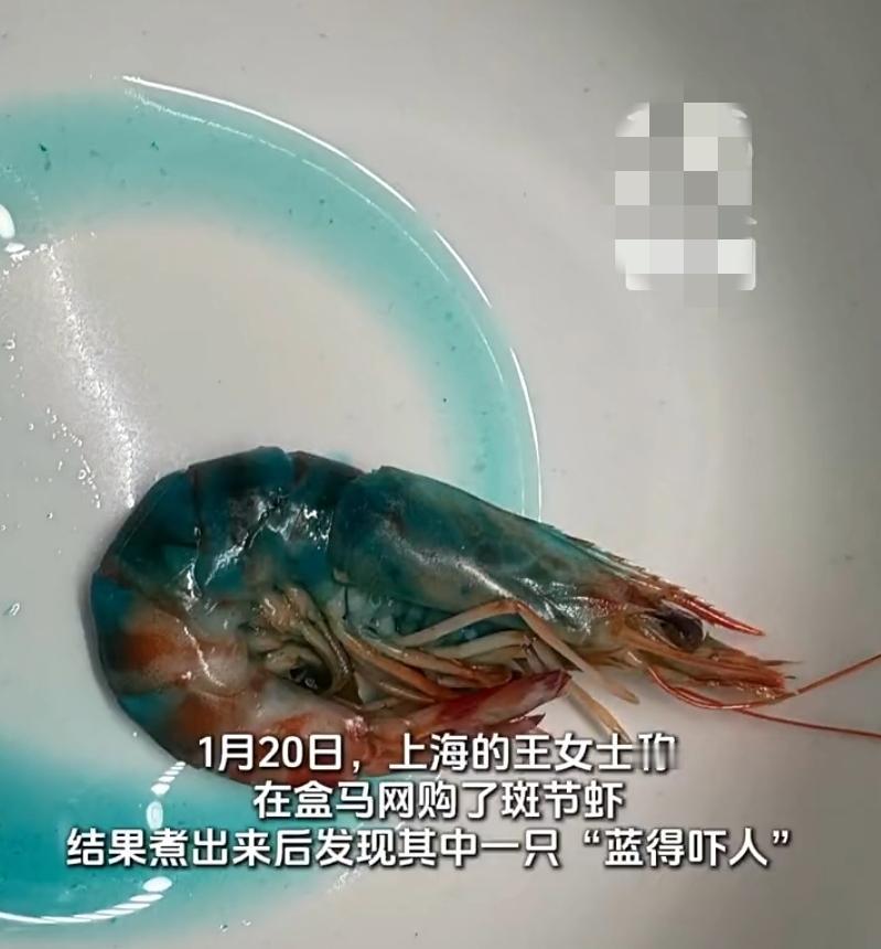 盒马斑节虾煮出蓝液体!客服说能吃,咱老百姓谁敢信? 上海大姐盒马网购斑节虾,煮熟加热后竟渗出蓝色颗粒,蓝得吓人!花40多买的虾直接不敢吃,找盒马客服要说法,就一句“养殖环境导致,不影响食用”,连承诺的检测报告,网店和包装里翻遍了都找不着,这敷衍谁能接受? 专家也出来解读了,单只虾发蓝大概率是虾自身代谢差异,或是吃了含藻蓝蛋白的饲料,压根不是网传的化学真要是高浓度铜污染,虾在养殖阶段就活不成了。咱老百姓怕的不是这种自然偶然现象,是商家拿不出证据的轻飘飘一句“没事”! 咱本土的国货商超,拼的就是良心和透明,食品安全这事儿,容不得半点含糊和敷衍。王女士已经留着虾准备专业送检,还向12345、12315反映了情况,硬气维权! 可这蓝色液体到底是啥成分?盒马后续能拿出实打实的检测报告吗?咱普通消费者的餐桌安全,总不能只靠自己维权兜底吧?对虾斑节虾 盒马八毛虾