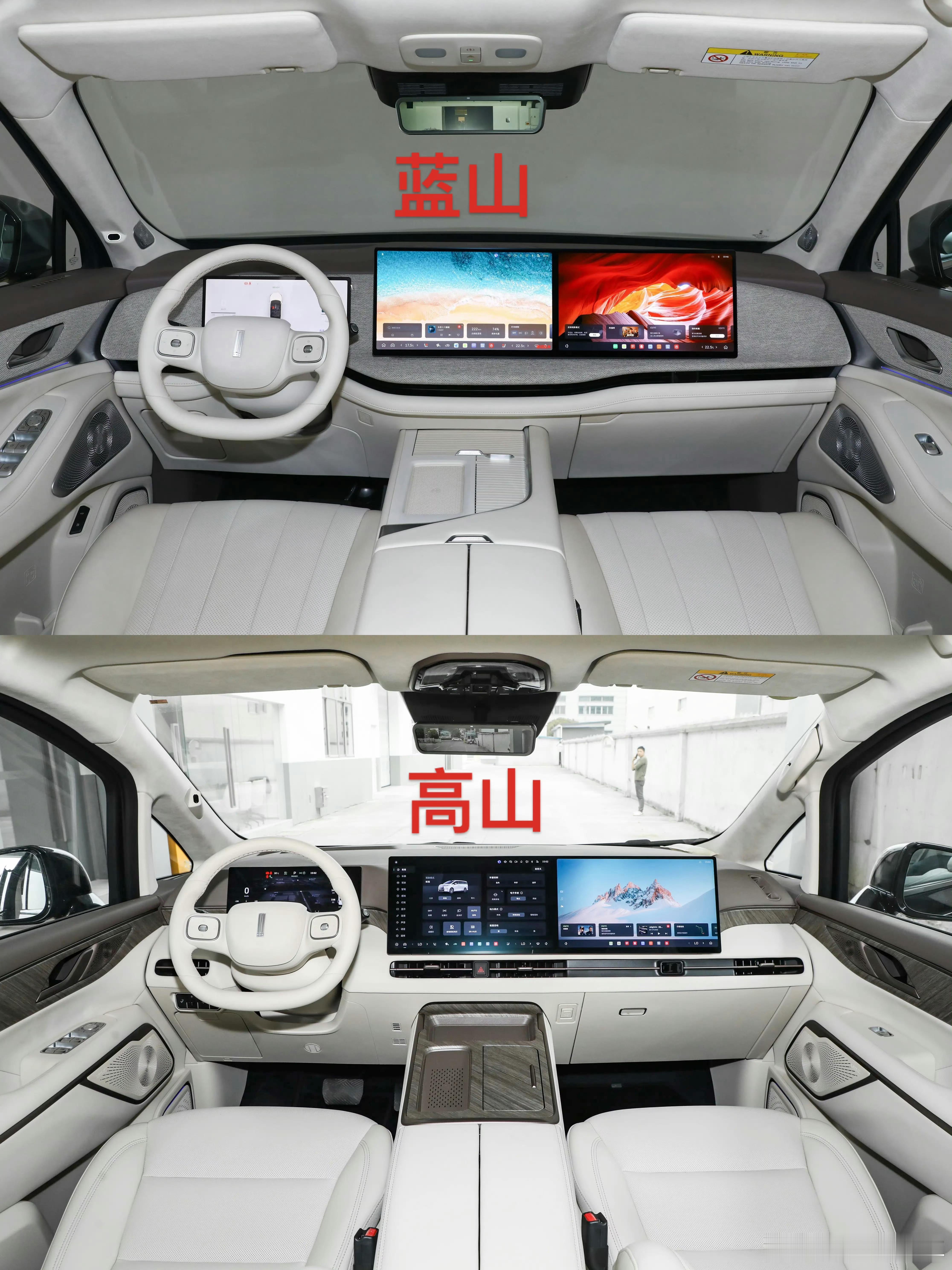 魏牌旗舰 SUV 新品的前排布局更清晰了,图一、图二是新车座舱设计布局谍照,设计风格延续图三蓝山、高山设计语言,整体还是HUD➕仪表屏➕双联屏布局,但开门按键、中岛拨杆按键、空调出风口、音响布局、门板储物等细节设计都有不同。长城汽车新能源汽车魏牌