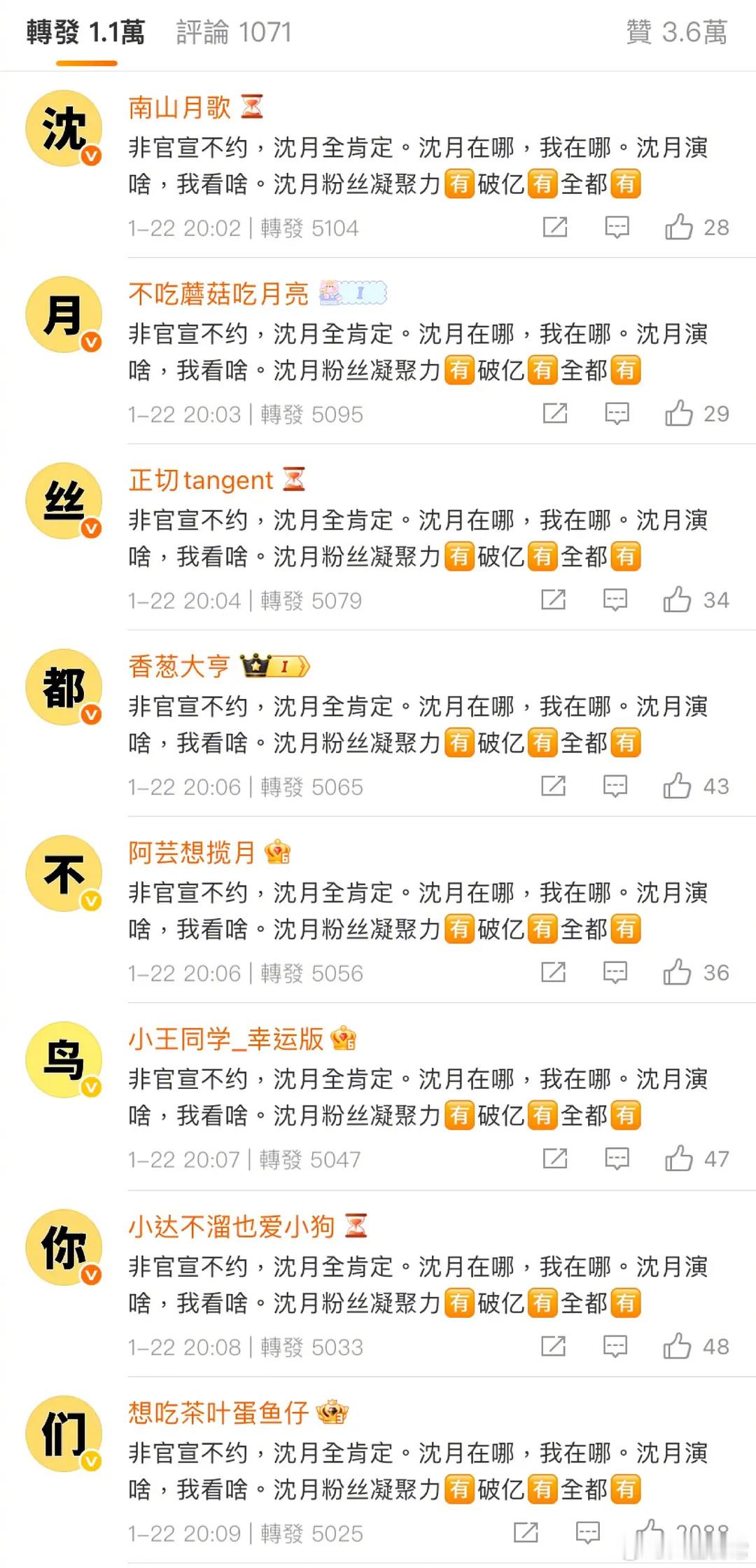 关于和张晚意合作《但愿人长久》,沈月粉丝排字
