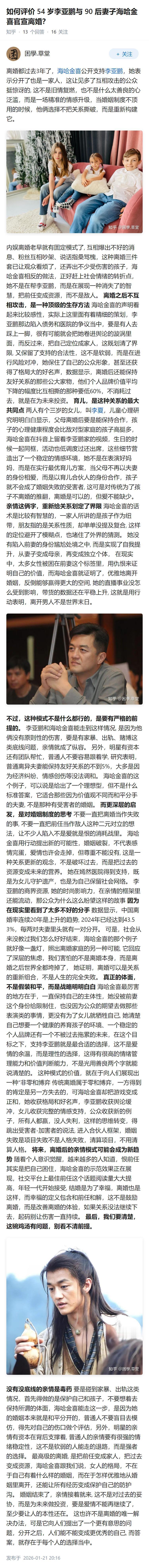 如何评价 54 岁李亚鹏与 90 后妻子海哈金喜官宣离婚?