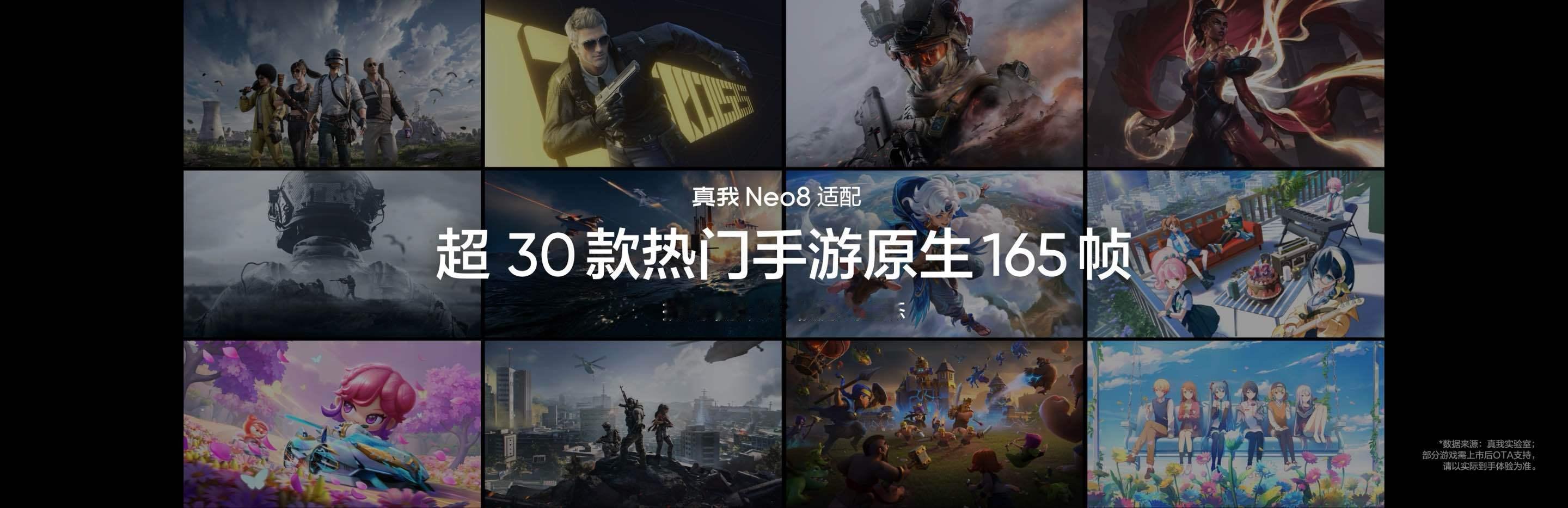 真我neo8 屏幕联合三星显示全球首发165Hz三星苍穹屏,M14旗舰发光材料加持。【通透狠超上限】 -同档唯一M14发光材料,发光能效提升26%,手动最高1000nit、全局最高1800nit、局部峰值高达6500nit,更支持3800nit阳光显示,配合激发亮度下的103%P3超广色域-相比144Hz刷新率功耗降低16%-T95是长时间高亮度下测试屏幕亮度衰减到初始值的 95%所需的时间,行业T95标准普遍为1000小时,真我Neo8搭载的165Hz三星苍穹屏将屏幕寿命提升50%,T95达到1500 小时。【165Hz流畅狠超上限】画面速度提升27%。适配超30款热门手游原生165超高帧, 覆盖和平精英、三角洲、穿越火线、暗区突围、使命召唤五大热门枪战手游。 【操控狠超上限】搭载妙感触控芯,支持3800Hz瞬时采样率、360Hz十指并发触控采样率以及旗舰级触显同步【护眼狠超上限】 支持全亮度DC调光,SVM值低至0.05,通过莱茵TÜV无频闪认证、硬件级低蓝光+AI疲劳检测。