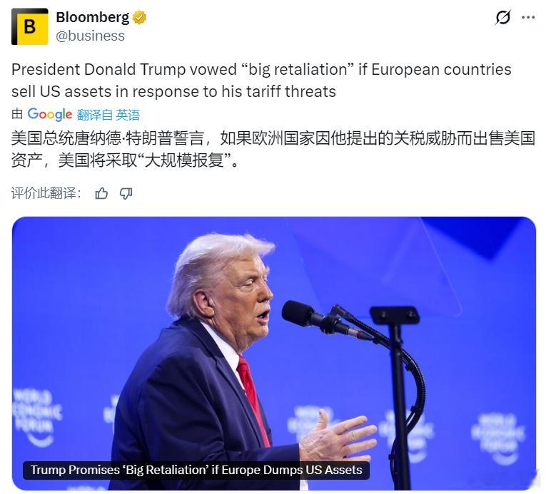 特朗普1月22日威胁,若然欧洲抛售美国国债,美国将大规模报复。海外新鲜事黄媒不会