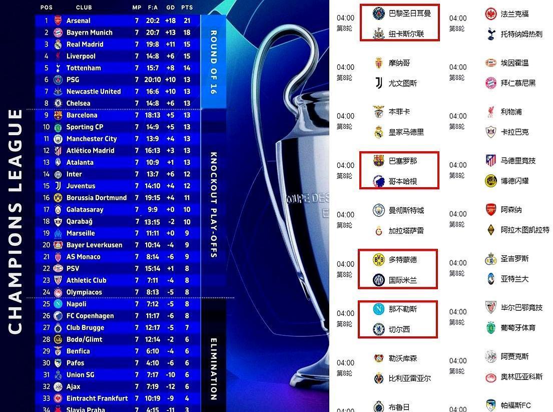 8队同分,最后90分钟定生死 1月28号晚9点,36队同时开球。赢的进十六强,输的去附加赛,甚至直接回家。13分档挤了8家豪门,差一个球就能上下挪五六名。 阿森纳21分已经锁头名,拜仁18分也稳。剩下六个直通席位,15分的皇马、利物浦算安全,14分的热刺稍喘口气。后面巴萨、曼城、切尔西、巴黎、纽卡、马竞、亚特兰大,全挂13分,谁赢谁上岸,平局都可能掉。 最刺刀的是巴黎打纽卡,谁赢谁八成进前八,平了就等着被后面净胜球反超。巴萨踢哥本哈根,纸面最甜,可一旦翻船,加泰电台又要排队道歉。曼城客场对布鲁日,看着容易,输了就可能被马竞、亚特兰大双双顶下去。 新赛制把偶然性砍了大半,强队主场基本收工,冷门只剩蚊子腿。想突围,要么火力全开刷净胜球,要么就祈祷对面比你还慌。90分钟后,有人开香槟,有人连夜算分,这就是欧足联要的电视剧。