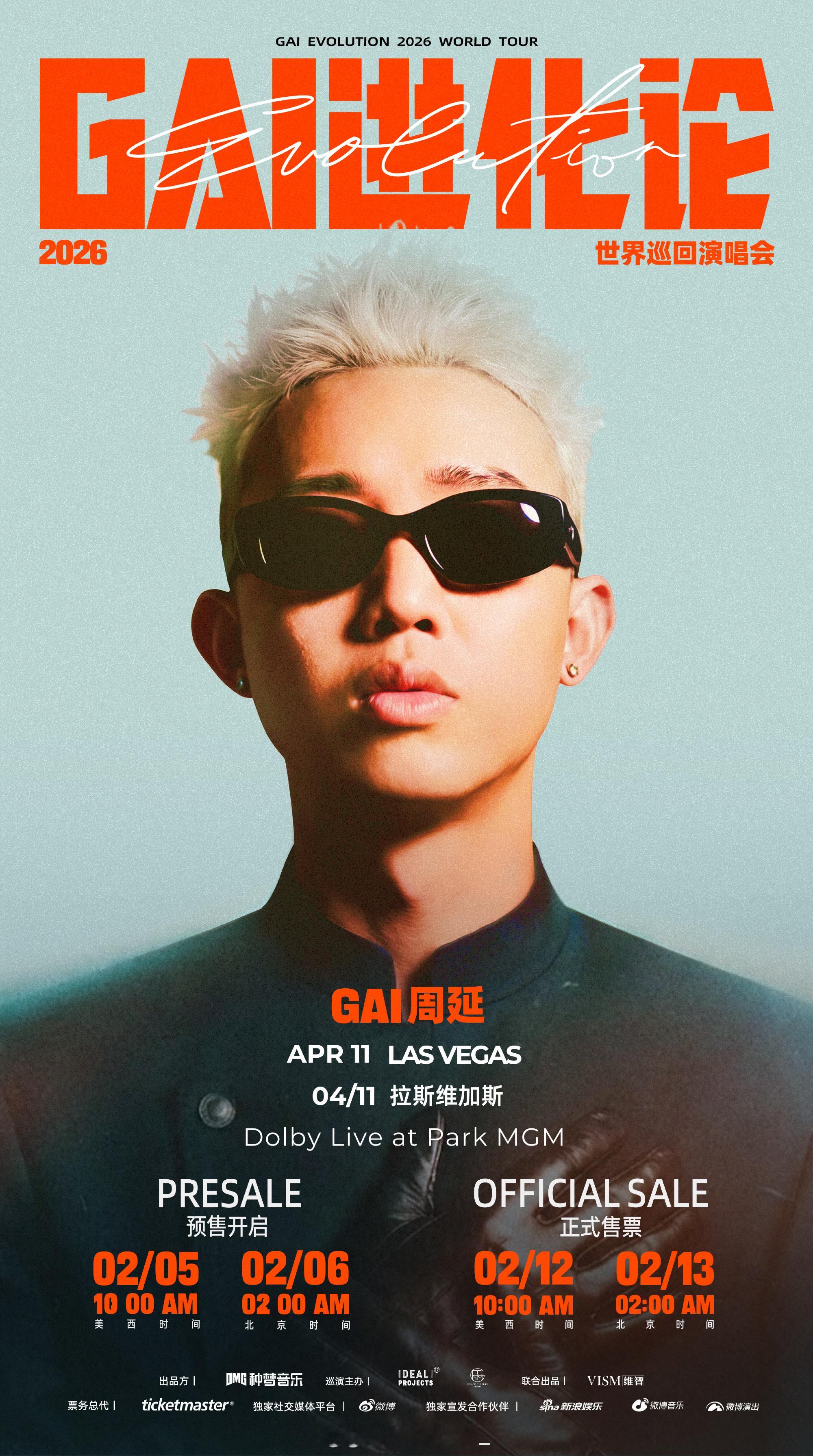 《GAI进化论》2026世界巡回演唱会第二站官宣🔥拉斯维加斯2月6日预售!2月13日正售!GAI进化论2026世界巡回演唱会