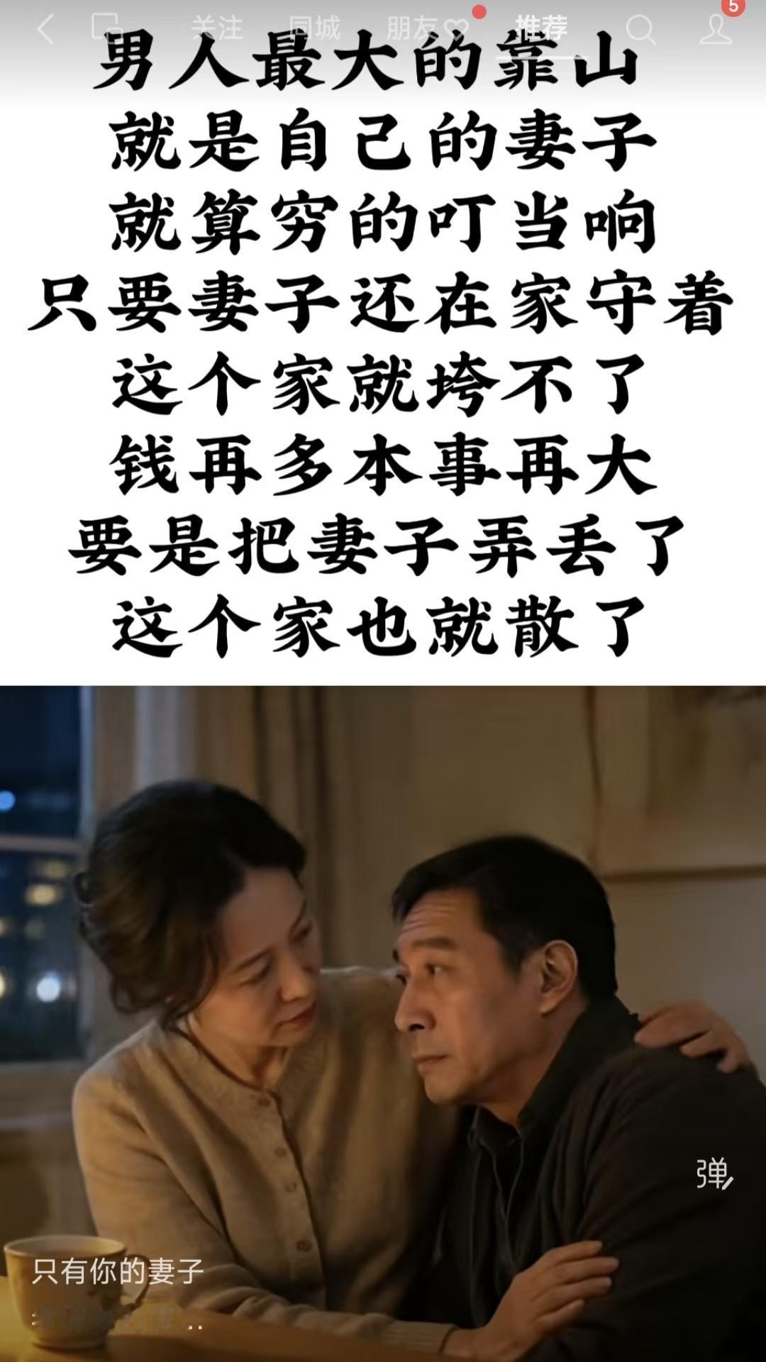 山坡羊·贤妻为靠 男儿营绕, 家山依靠, 贤妻相伴情难老。 岁寒萧,冷空飘, 囊空犹幸妻仍抱, 此户温馨根未倒。 妻,家尚好; 离,家已渺。 金多功妙, 骄狂心傲, 弃妻失爱家将了。 意昏焦,梦残消, 繁华顿作云烟杳, 往昔欢娱皆去遥。 妻,家至宝; 无,家尽糟。