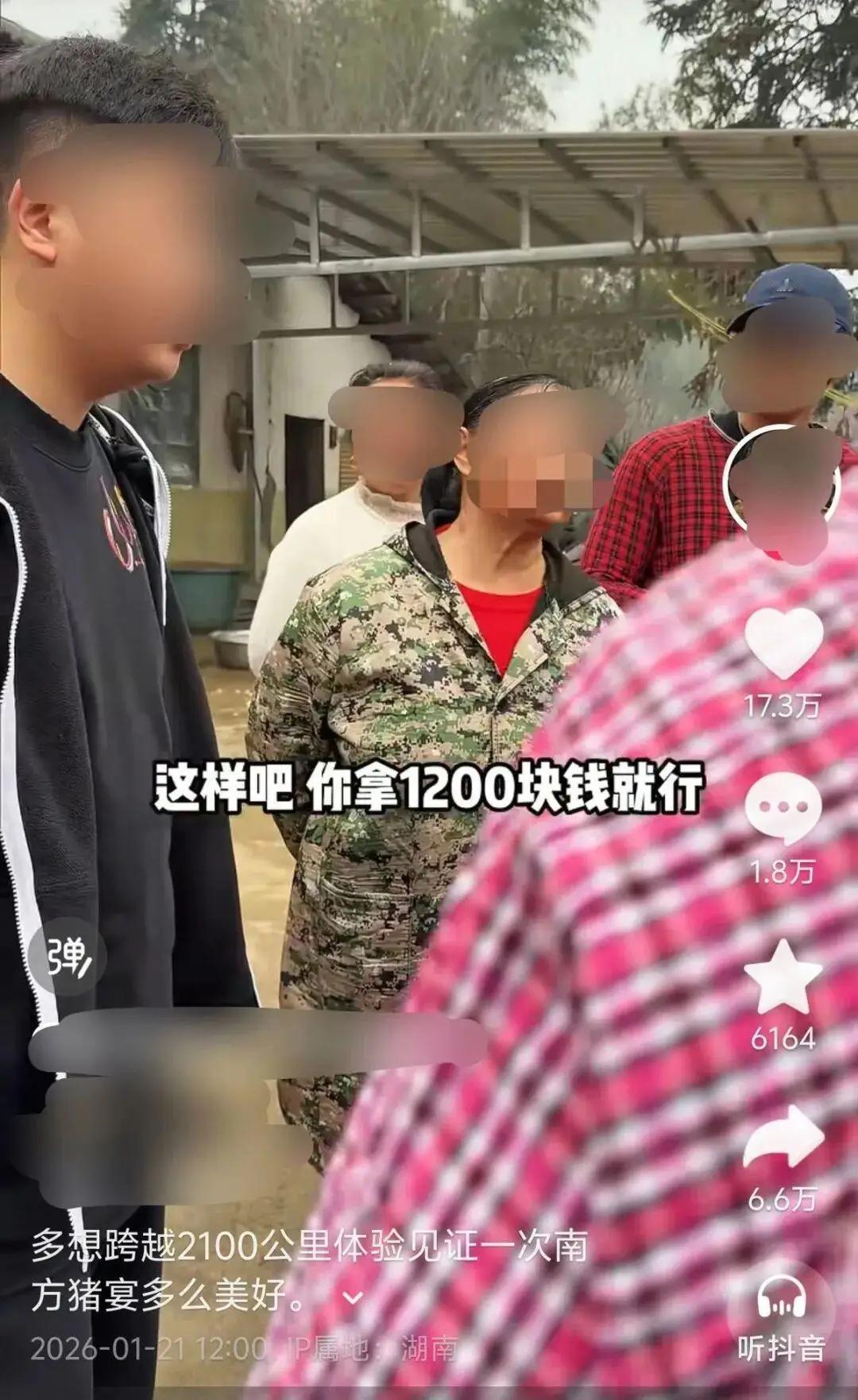 “人心险恶!”湖南株洲,一男子是900万粉丝博主,在村里花3200买了头400斤的大肥猪,准备办杀猪宴,请村里老人免费吃,刚宰完猪,村民突然翻脸,索要2000场地费,双方吵了起来,最终,男子付了1200场地费离开,杀猪宴没办成,猪肉又被村民拿走了。村子却回应说:没报备还抹黑,报警了! 一男子是有900多万粉丝的博主,他想给村里的老人送点温暖,请他们免费吃顿饭。 于是,2026年1月17日,男子和他的团队来到某村,在一村民家,花3200元买了头400的大肥猪,准备宰了吃肉,吃不完的肉,他们也不打算带走,直接给留守老人分了。 猪买了,在哪里举办杀猪宴呢?需要很大一块场地,卖猪村民很热情,带着他们来到另一个场地宽敞的村民家。 这个村民笑脸相迎,很爽快的答应,还承诺不收场地费,因为男子做的是好事。 可万万没想到,第二天猪宰了,厨师到位,吃饭的老人也请来了,男子为了表示感谢,还给提供场地的村民送了一块很大的猪肉,他却翻脸不认账了。 村民狮子大张口,不但场地不免费提供了,还索要2000元场地费,趁男子去请老人来吃饭时,猪肉还莫名其妙的少了。 男子觉得村民言而无信,双方吵了起来,有人还开车把出村的路口堵了。 没办法,人家的地盘人家做主,男子无奈,也没心情办杀猪宴了,最后讨价还价,给了1200,猪肉大部分也被村民瓜分,他灰溜溜的离开了村子,然后发视频曝光了此事。 事情闹大后,村里工作人员回应,他到现场时,纷争已经平息了,男子跟村民道了歉,他就让他们离开了,他当时不知道发生啥事了,知道看到男子的视频,才了解来龙去脉。 但工作人员表示,男子办杀猪宴,需要报备,而且,他邀请免费吃饭的,也不是独居老人,他需要更正的是,猪肉不是村民抢的,是男子送的,因为杀猪宴没办成,而且,给村民的猪肉不是一头猪的一大半,而是一小半。 工作人员表示,男子办杀猪宴可以,但不提前报备,还发视频抹黑,对他的行为很是愤怒,已经报警了。 男子一方对这种说法进行了否定,说没有给村民分肉,是他们自己不问自取。 目前,相关部门已介入调查处理此事,还没结果,我们拭目以待。 有人认为,虽然这次农民做法让人大跌眼镜,但租别人场地要事先说好吧,现在不是80年代,农民也天天能吃上肉,没人在乎吃顿肉,你办杀猪宴前最起码第一和村里说一下吧,第二和租地的农民说下租金吧,你两样都不说。 还有人认为,一个想博取流量赚钱,一个想关门宰人敲一笔赚钱,但是说实话,事前应该讲好,不应该出尔反尔,看到人家赚钱就眼红。 别以为网红请几个老人吃顿饭是善心,就是为了直播流量挣钱,人家村里难道要免费提供场地和老人配合你演戏,你拍戏请演员不应该发工资吗? 这事儿真是公说公有理,婆说婆有理。网红博主想做好事请老人免费吃杀猪宴,这出发点是好的,想博流量也无可厚非,毕竟现在不少人做公益也带着宣传目的。 但没提前跟村里和场地主人沟通好报备、租金这些事儿,确实欠考虑,容易引发矛盾。 村民呢,一开始答应免费,后来又反悔索要场地费,还闹出堵路、猪肉“失踪”这些事儿,做法实在不地道,太看重眼前利益,把诚信都丢了。 而且村里回应说猪肉是博主送的,博主又否认,这更让事情变得复杂。 其实双方都有问题,做好事也得讲规矩、讲诚信。博主该提前做好沟通协调,村民也不能出尔反尔、狮子大开口。 现在相关部门介入调查了,希望能查个水落石出,给双方一个公正的结果,也让大家明白,不管是做好事还是做其他事,都得按规矩来,别让好事变了味。 对此,你怎么看?