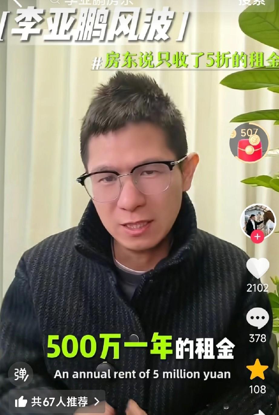李亚鹏房东出来回应涨房租的事,他的助理说当初前十年他们是给医院打了五折。三年前涨价只是恢复原价,收回他们的物业费。 可是我看很多博主的分析都是,本来这个地方的房子就不好租,当年一年500万是正常市场价。博主说房东500多平的大平房,如果一次性租出去,这已经很难得了。还能遇到李亚鹏这样的明星租客,可以一连租这么多年,没涨价前也一直按时交租,已经是碰到很好的租客了。 再说人家租这么大平方,租这么多年,还做的是公益,打个折也是应该的,相信很多房东都会这么做。 现在房东让李亚鹏给他道歉,说如果道歉会考虑再租给他。可是李亚鹏为什么要给他道歉呢?现在想给李亚鹏提供场地的人有的是。干嘛受这个委屈? 反而是他先担忧一下自己的房子吧,如果李亚鹏不续租了,现在望京那片的写字楼有很多都租不出去,还有这个事影响这么大。他的房子以后还有谁敢租?