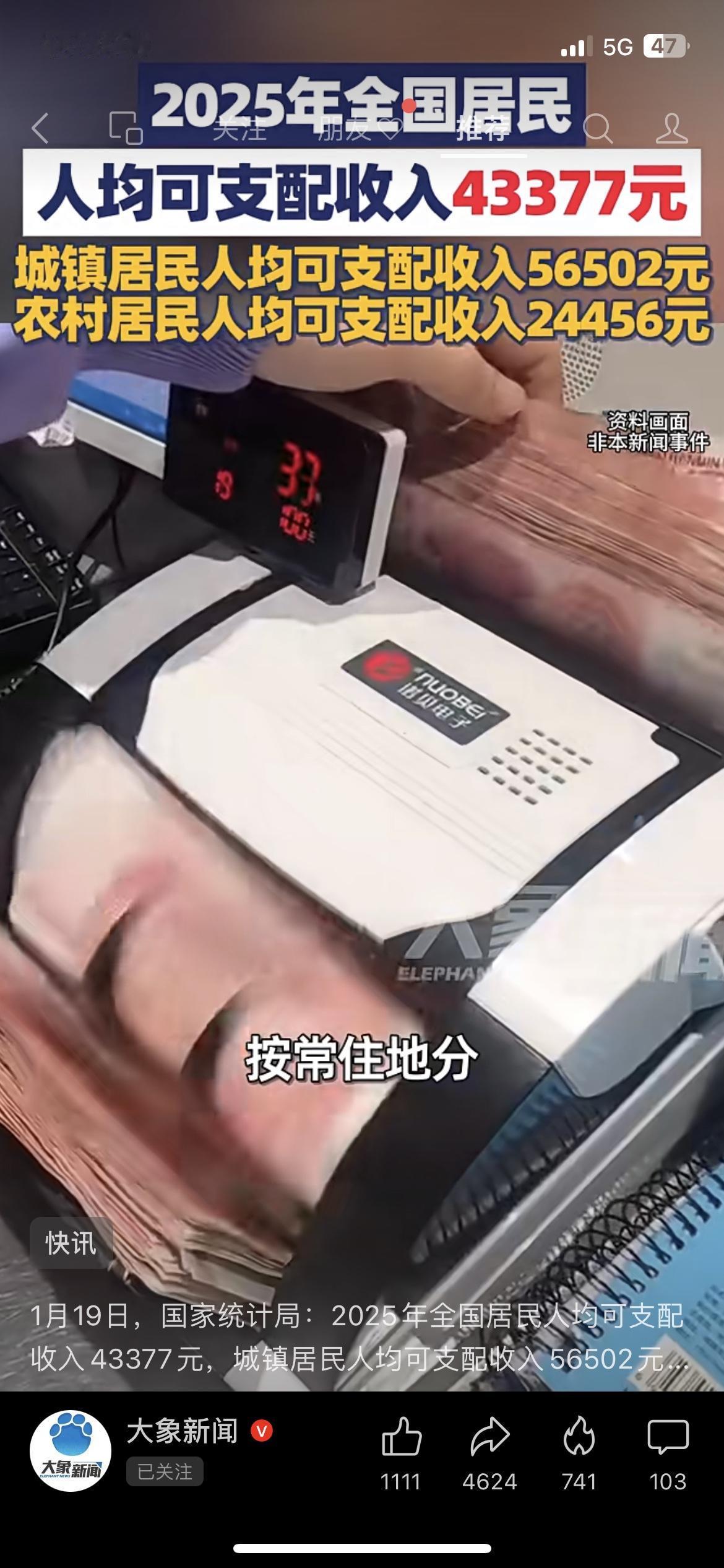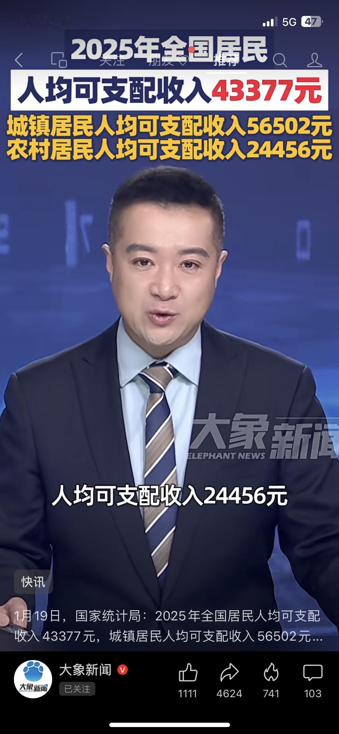 人均可支配收入出炉!你拖后腿了吗? 国家统计局刚发布:2025年全国人均可支配收入43377元,城镇56502元,农村24456元。我表哥在县城打工,年收入5万,刚够得上城镇线,说“拖家带口的,这点钱紧巴巴”。懂的都懂,人均是平均数,咱们普通人的钱包才是真实的生活。 人均收入是数字,你的钱包才是生活。 你今年收入达标了吗? 民生经济 人均收入
