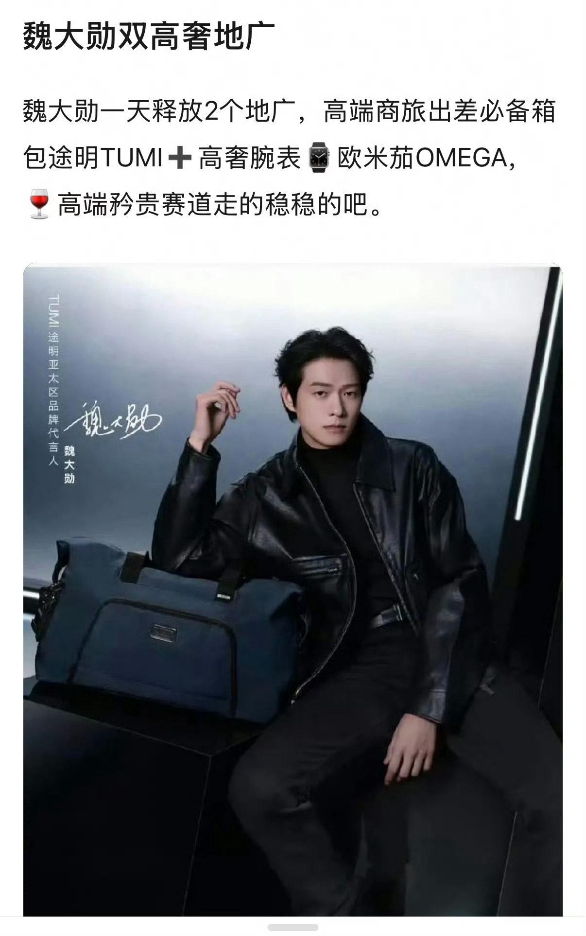 魏大勋双高奢TUMI和欧米加同一天铺地广,高级贵气,超大排面