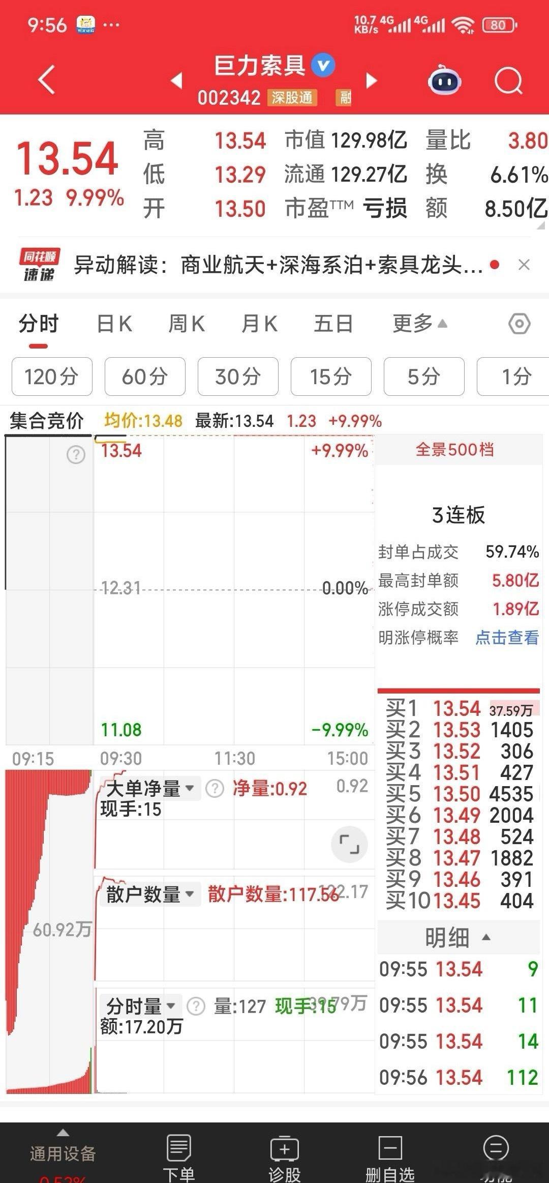 【今日狙击】集合先挂单开战,巨力索具,江化微,中超控股。