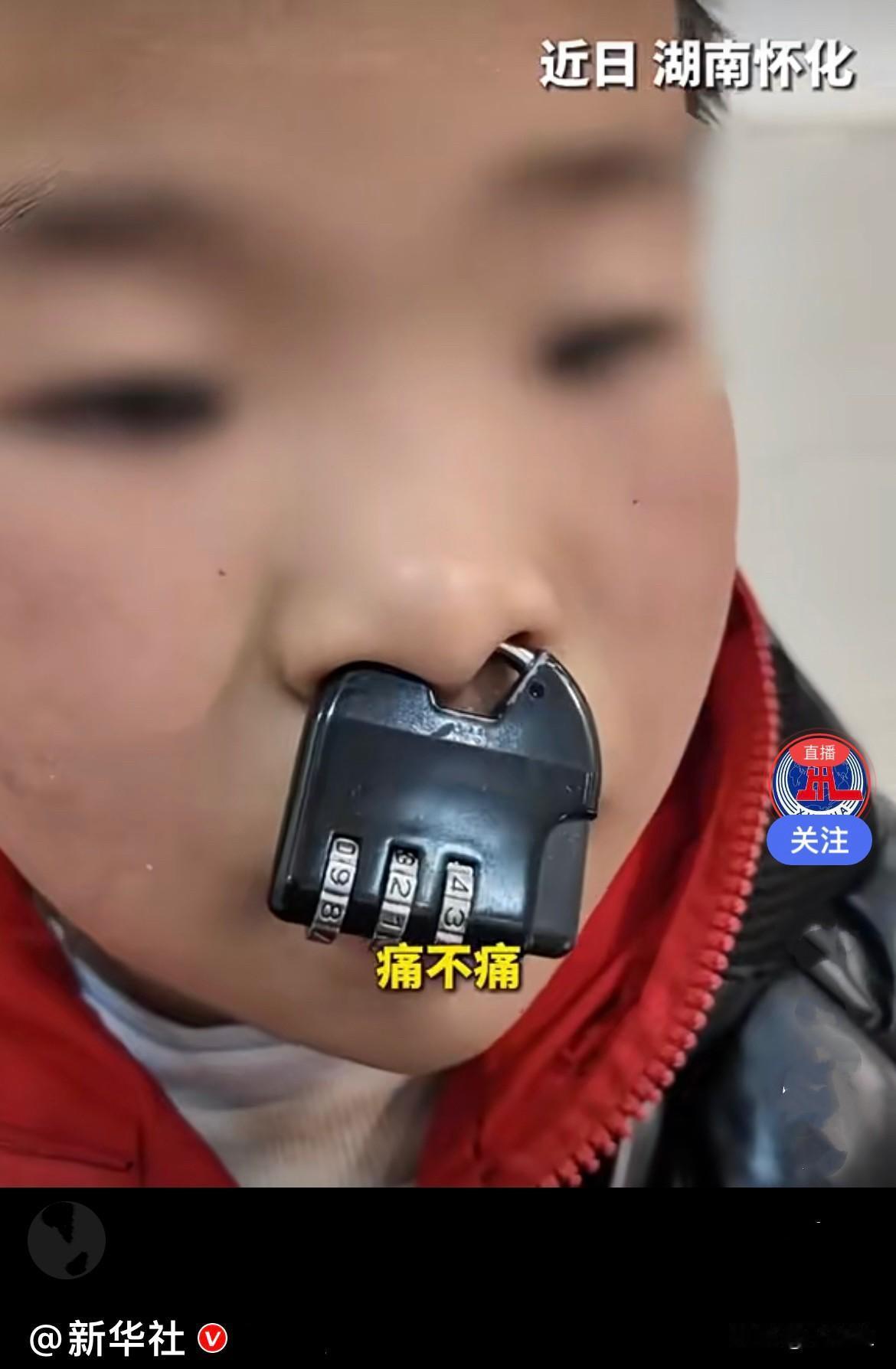 近日,湖南怀化一男孩,调皮淘气玩密码锁,把自己鼻子夹住了,密码锁取不下来了,“熊孩子”立马变成了“牛魔王”…… 家长立即领着孩子去当地消防队求救,消防员用破拆钳取下了密码锁,取之前温柔的告诉小男孩痛就喊一下,取下之后问男孩下次还玩不,男孩说不玩了…… 孩子安全无小事,家长时刻要重视,要加强日常看护与引导,帮助孩子树立安全意识……