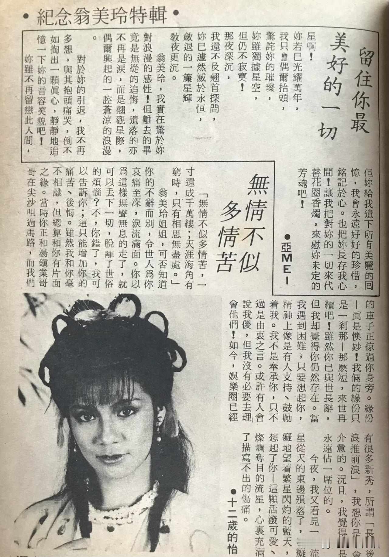 🎆翁美玲旧刊报道👇字里行间全是当年粉丝的真情。 原来在39年前,就有无数人